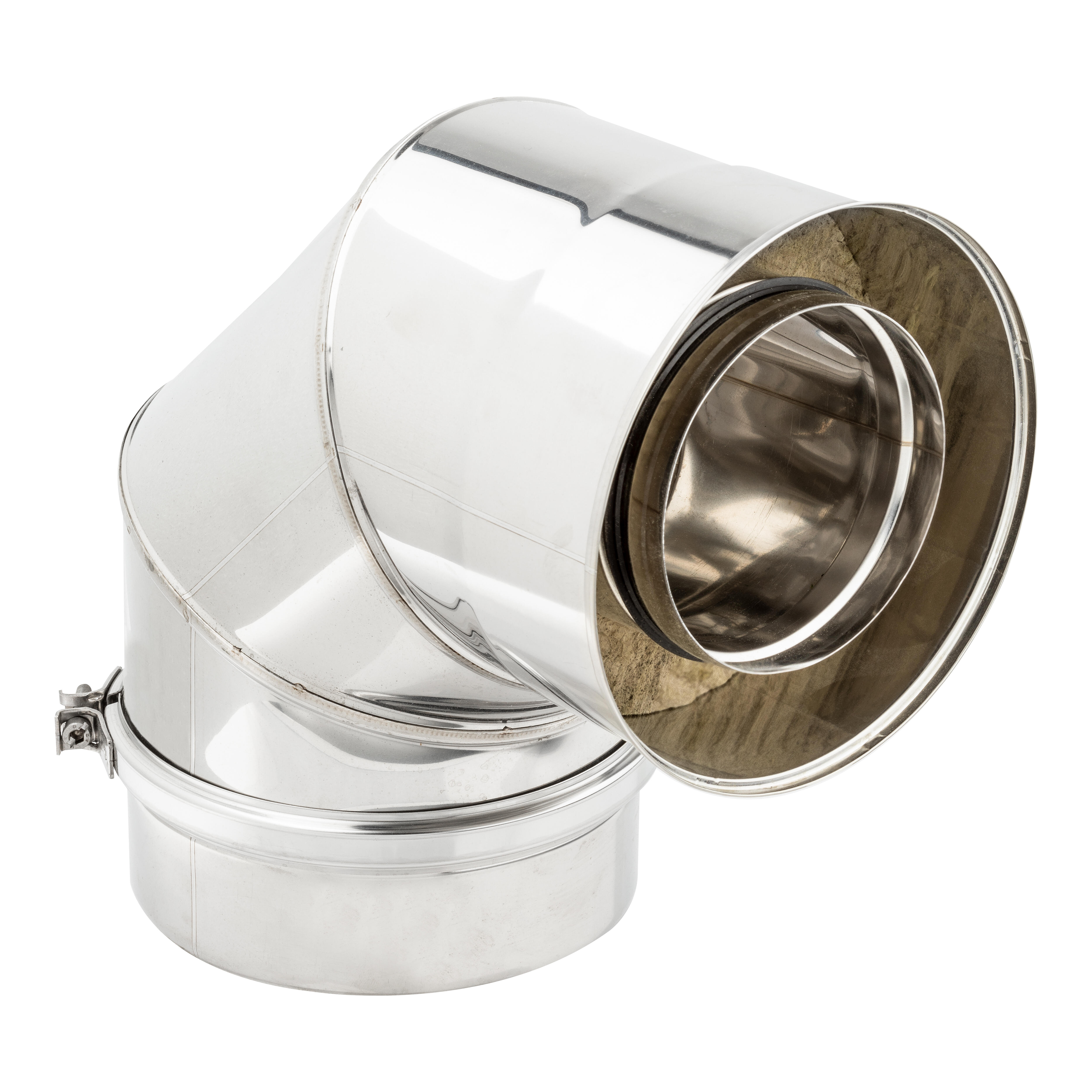Codo 90º doble pared inoxidable 316 para la evacuación de humos de estufas de leña, inserts y hogares. Diámetro: 200 mm.