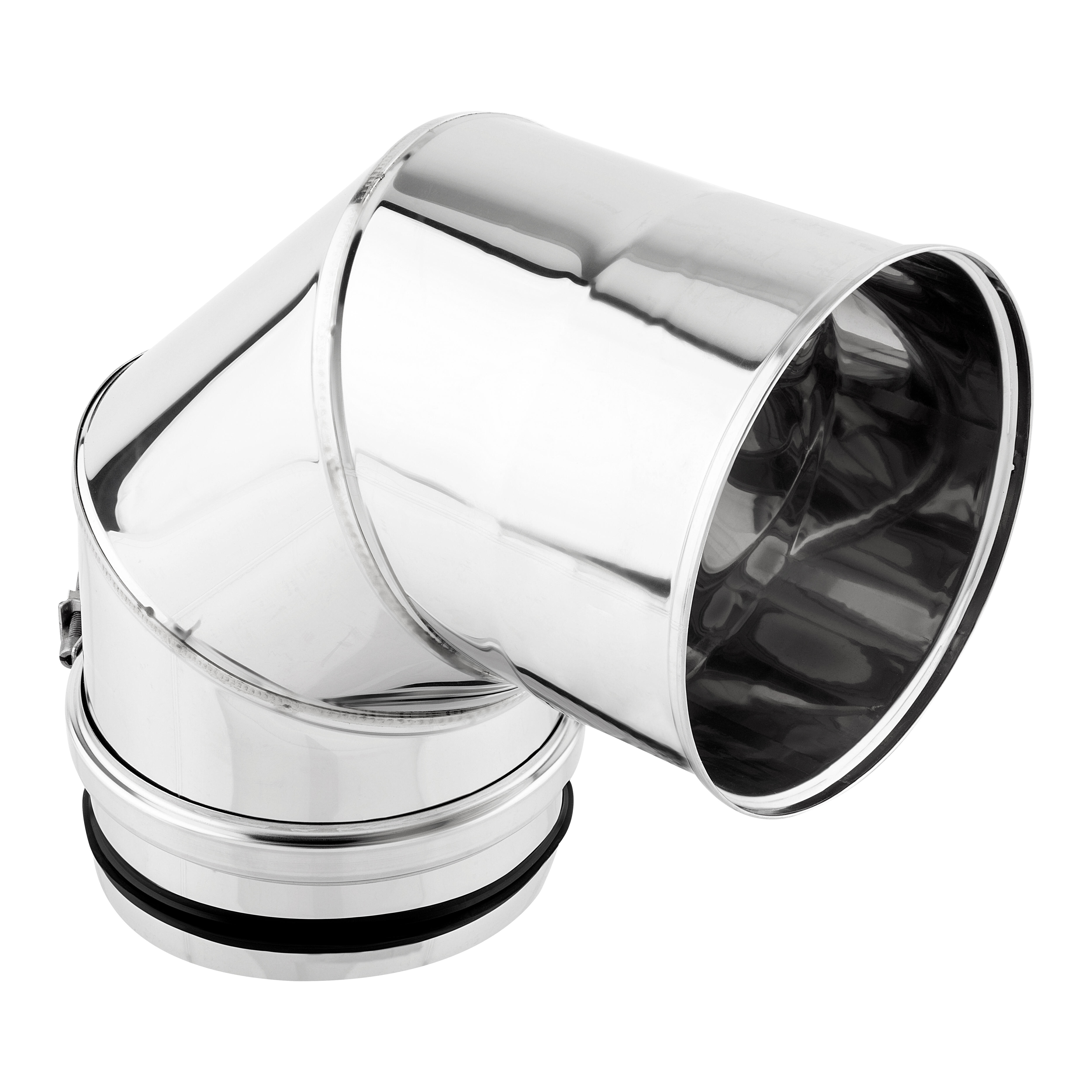 Codo 90º simple pared inoxidable 316 para la evacuación de humos de estufas de leña, inserts y hogares. Diámetro: 125 mm.