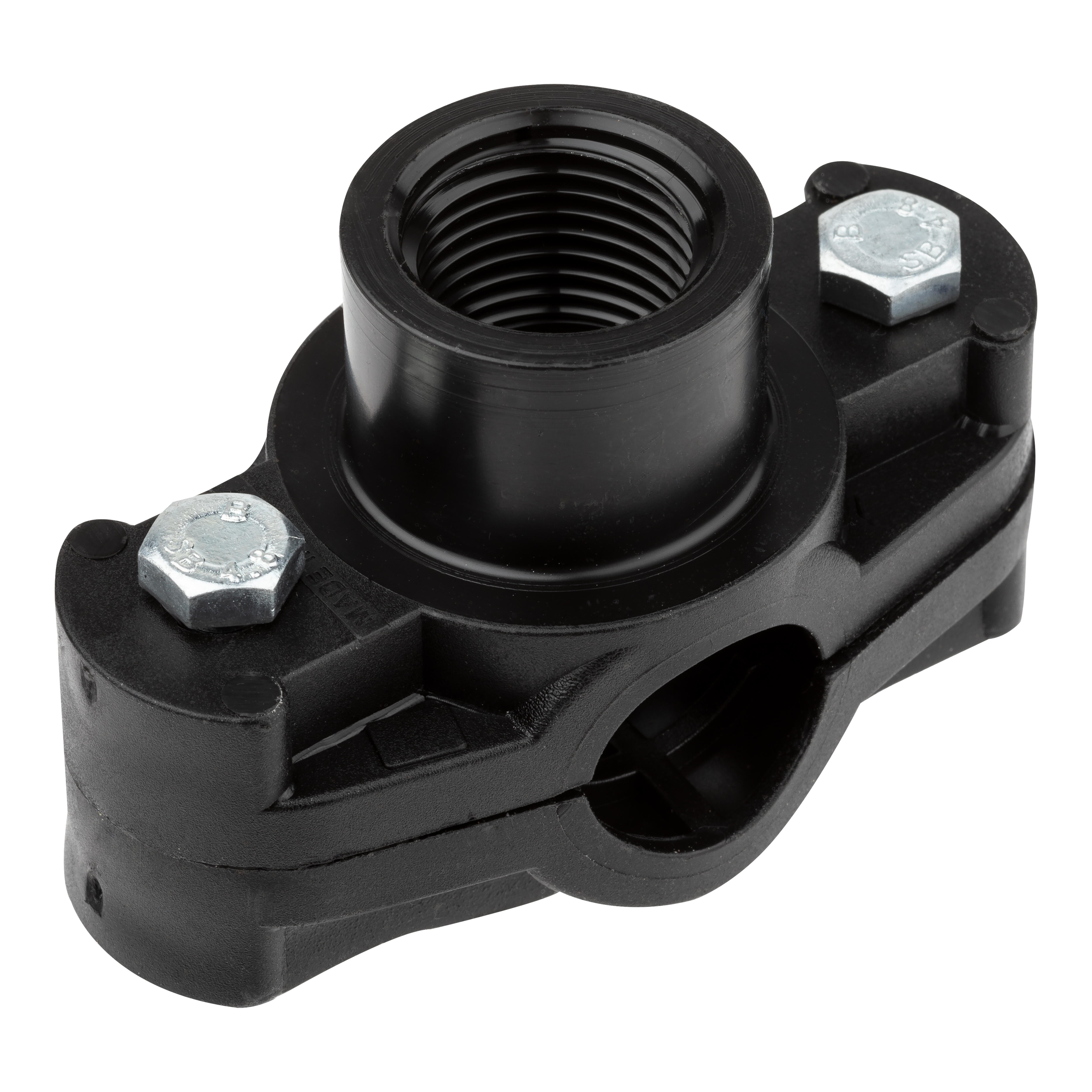 Collarín de riego utilizado para colocación de elementos de riego en tuberías de Ø20mm. Salida rosca hembra 1/2".