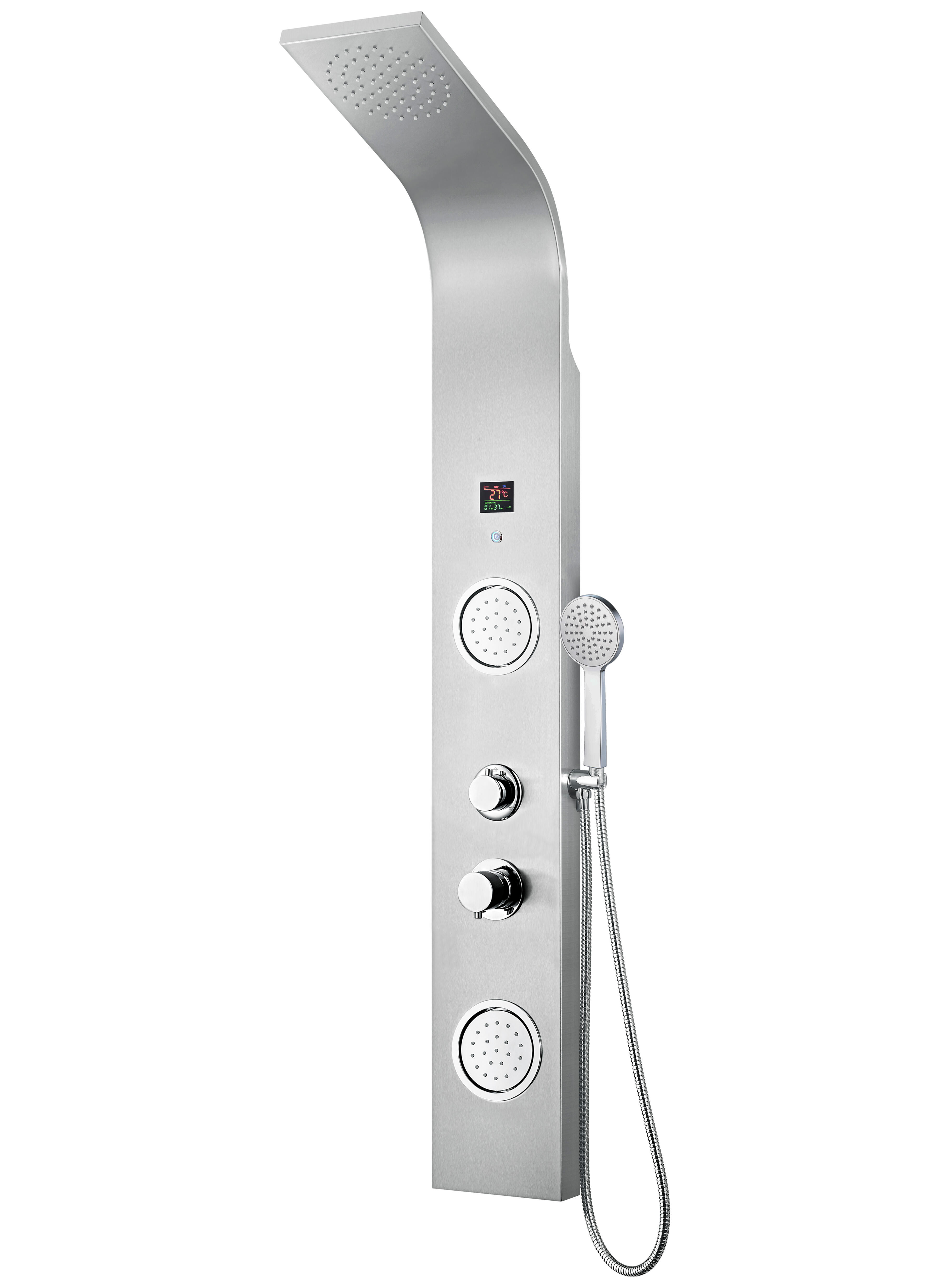 Columna de ducha hidromasaje modelo Snake digital, inoxidable. Medidas 140x20cm. Grifería termostática. Hidromasaje con 2 paneles y pantalla digital.