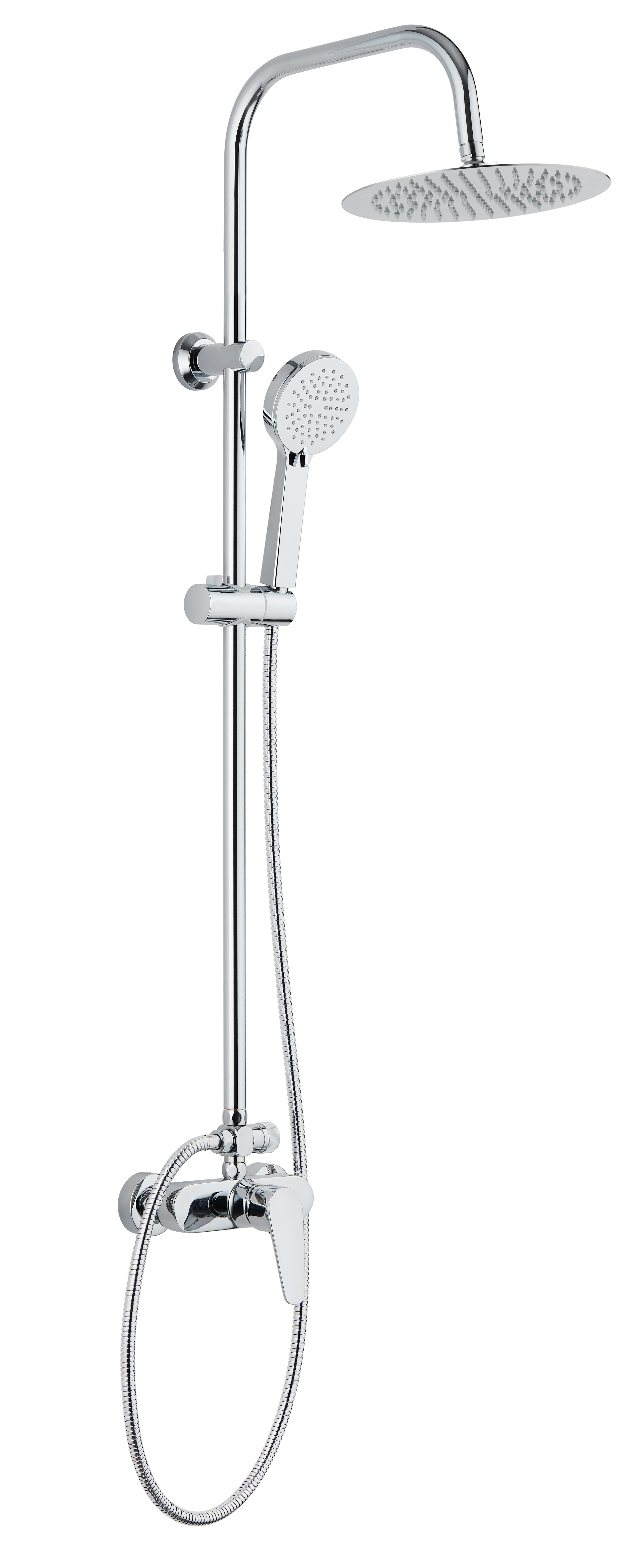 Conjuntos compuestos por duchón superior, mango, flexo y barra. Sus mangos y duchones contienen picos de silicona para que la cal no se incruste y se limpien fácilmente. Elija en nuestra gama el que mejor se ajuste a sus necesidades ya que algunos de los conjuntos disponen barras regulables en altura. De diseños modernos que combinan con cualquier tipo de baño. Caracteristicas: Alto de la barra: 115 cm en acero inoxidable con soporte a pared. Flexo inoxidable 1.5. Duchón superior orientable extraplano en acero inoxidable 25 cm diámetro. Antical. Ducha de mano ABS cromo 3 chorros.