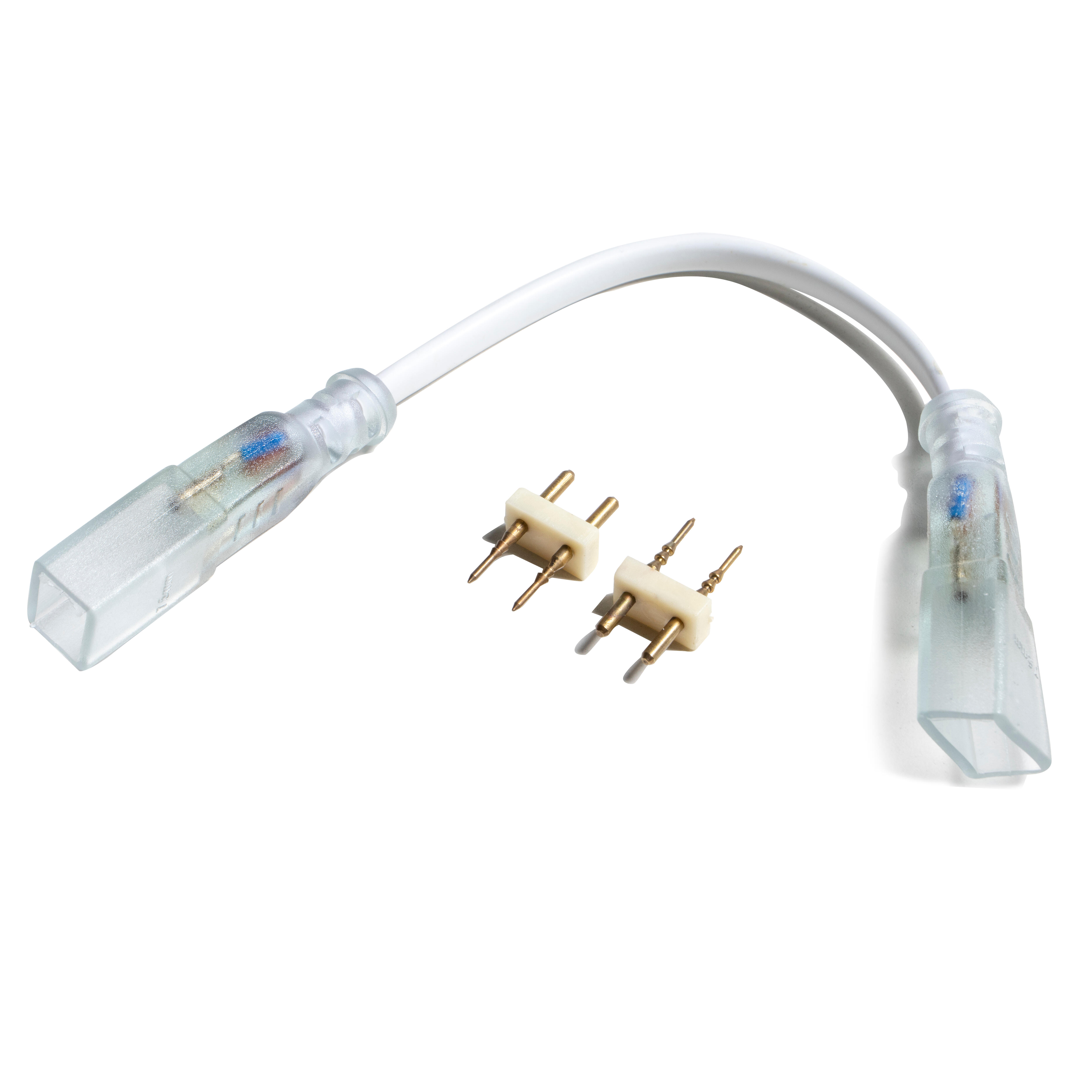 Cable con conector para tira led al corte de 230V. Fabricado en PVC. Grado de protección IP65. Color blanco. Longitud 20cm.