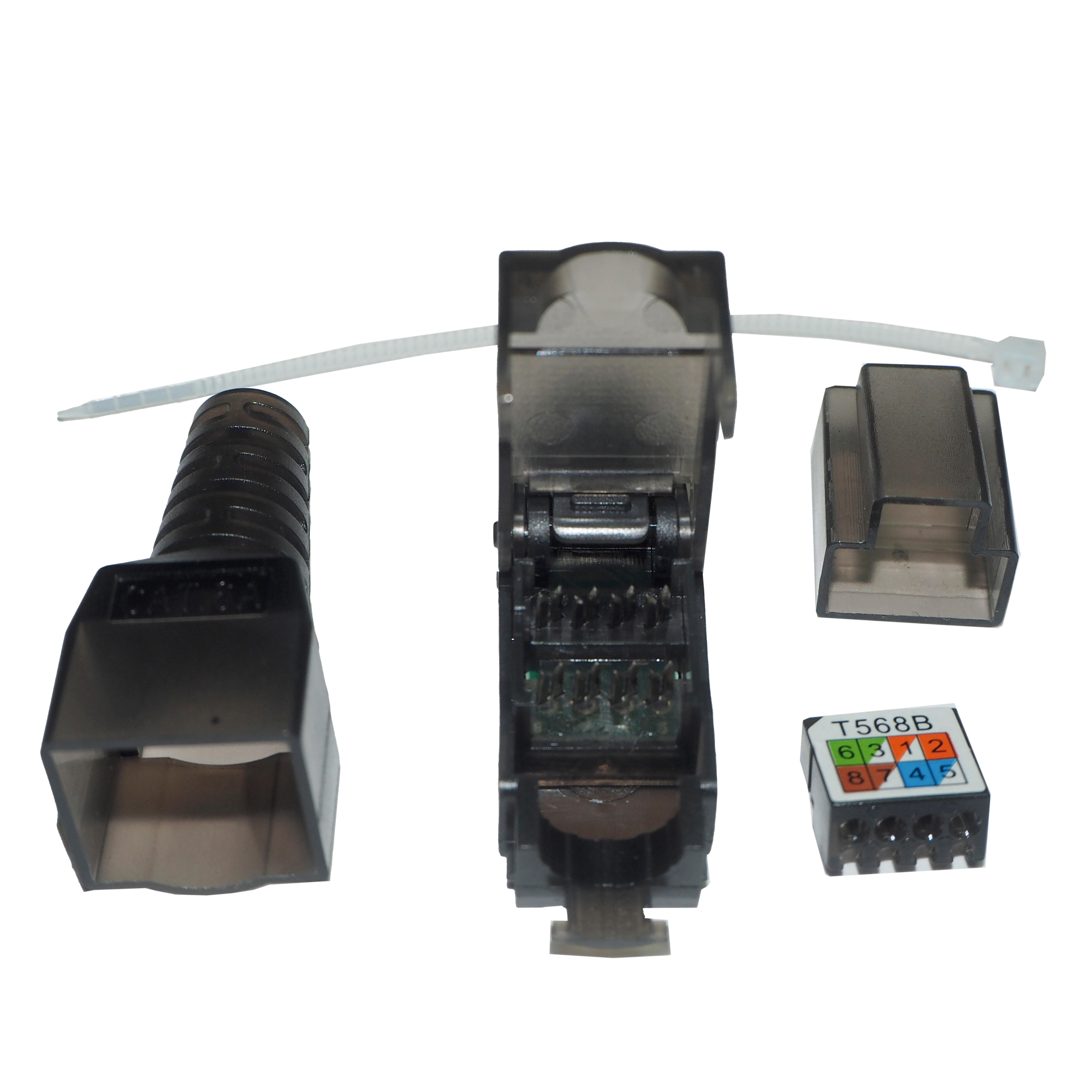 Conector para cable RJ45. Fabricado en plástico, está destinado para cables sin apantallamiento o blindaje. El tipo "easy" nos facilta el corte de cable sobrante una vez introducido en el conector para una mayor fiabilidad del proceso.