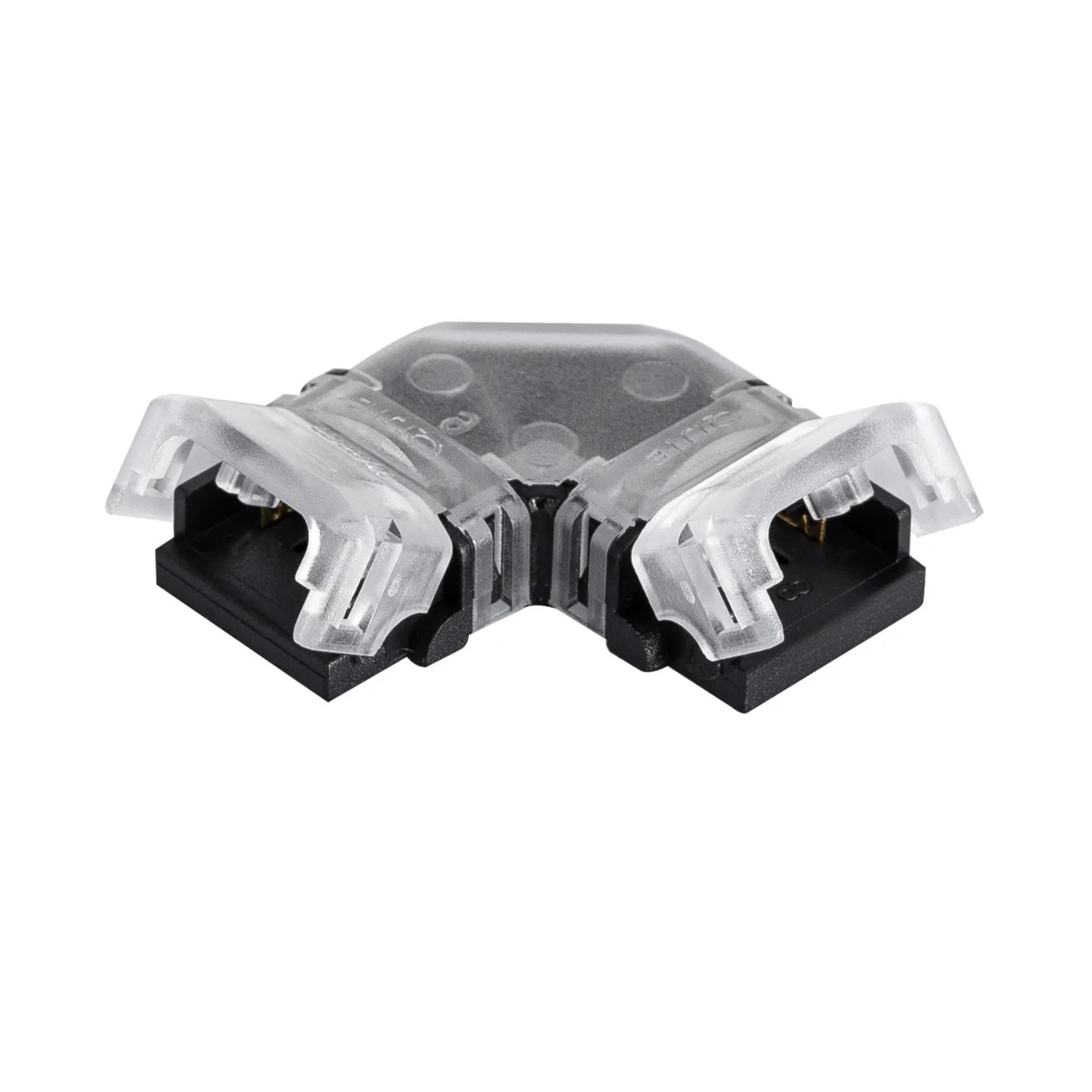 Conector hipopótamo para tira led monocolor de 24V, fabricado en PVC con grado de protección IP20. Tipo de conexión en forma de L. Color Negro.