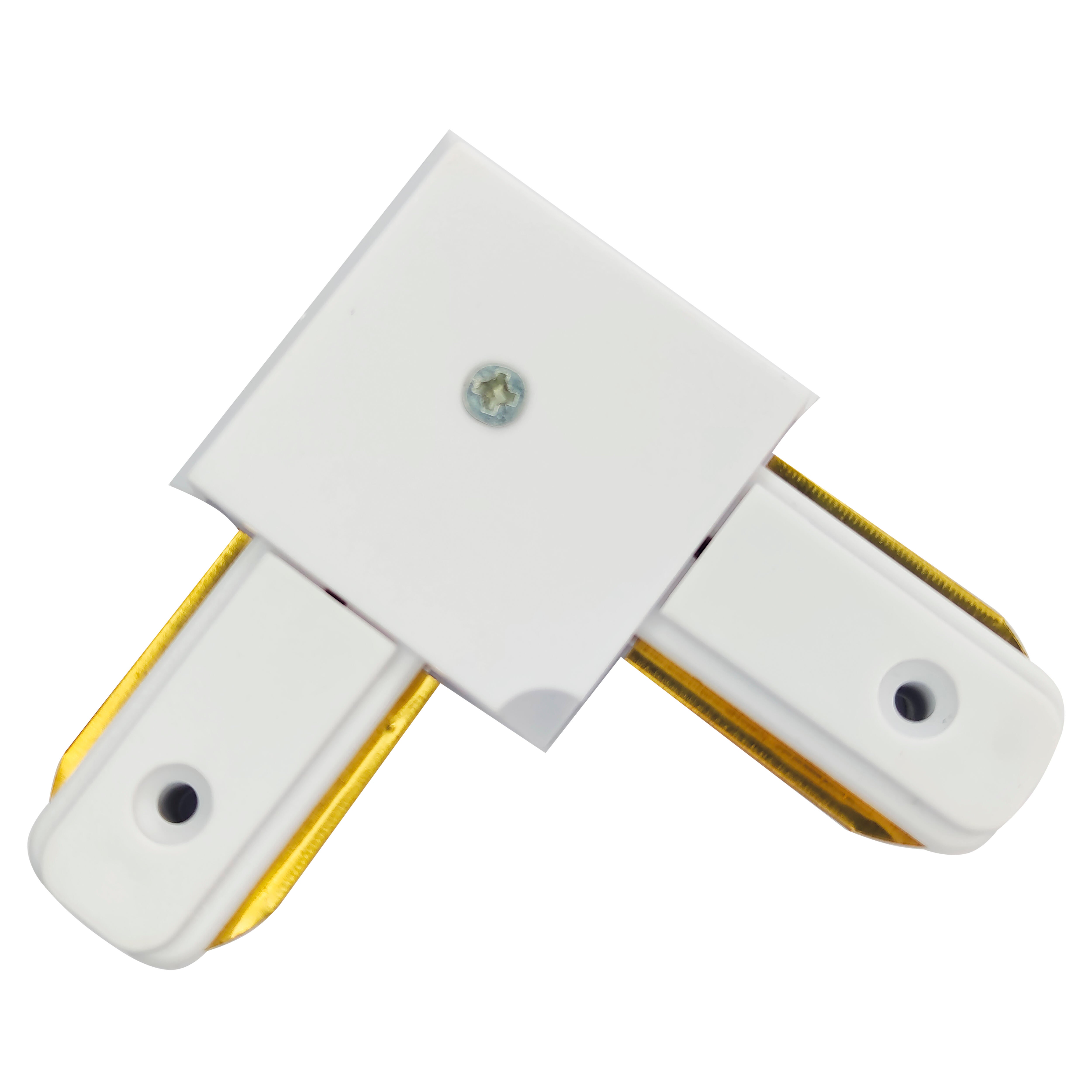 Conector tipo l para Carril monofásico reforzado. Color blanco.