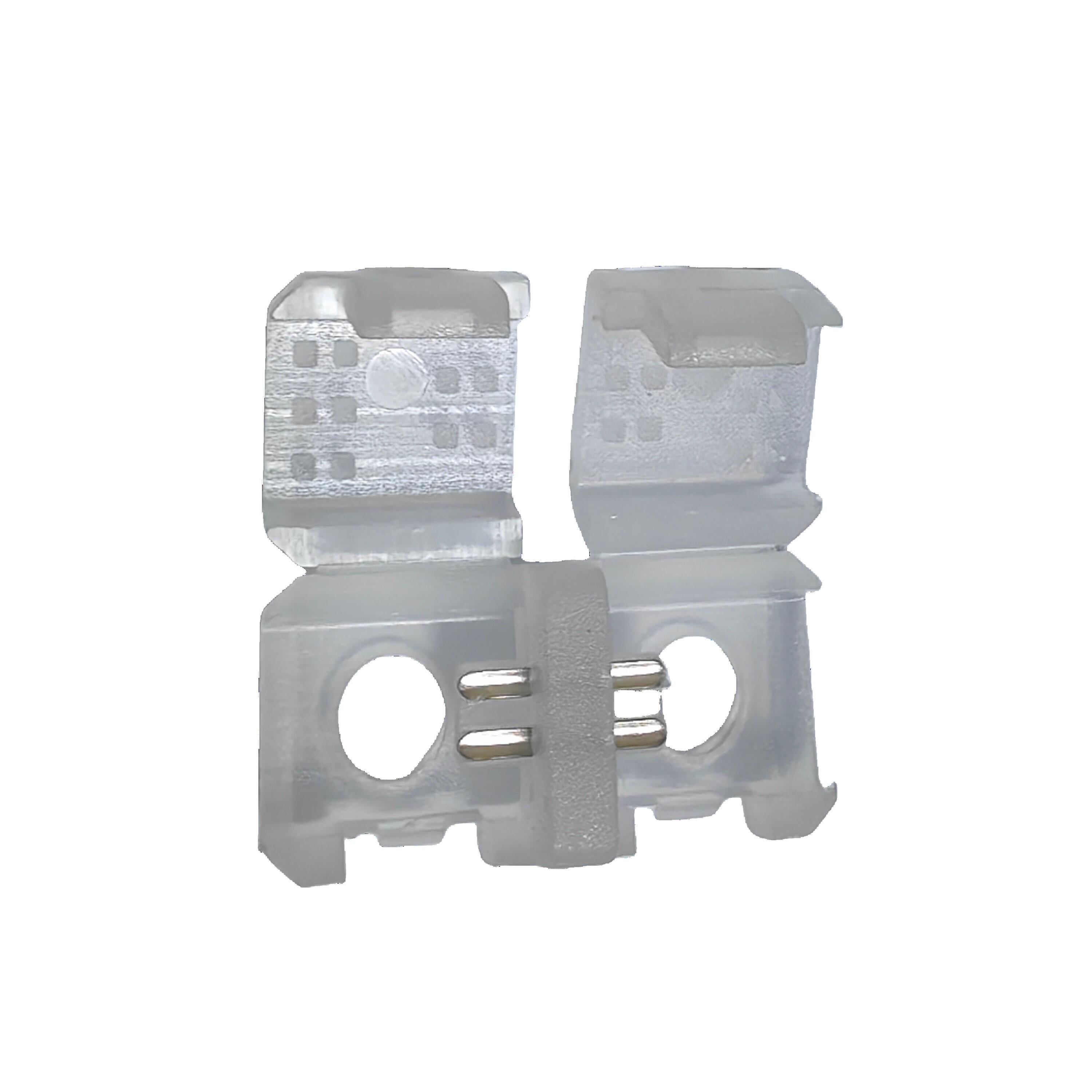 Conector para tira led al corte de 230V, fabricado en PVC con grado de protección IP65.