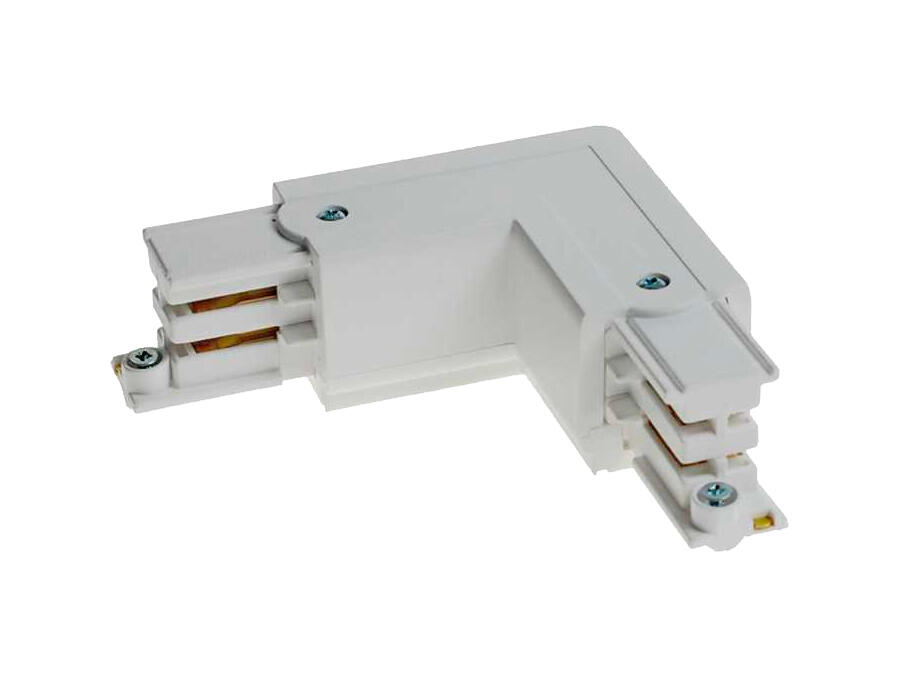 Conector carril tipo L que permite unir focos de carril de cinco líneas. Color blanco.