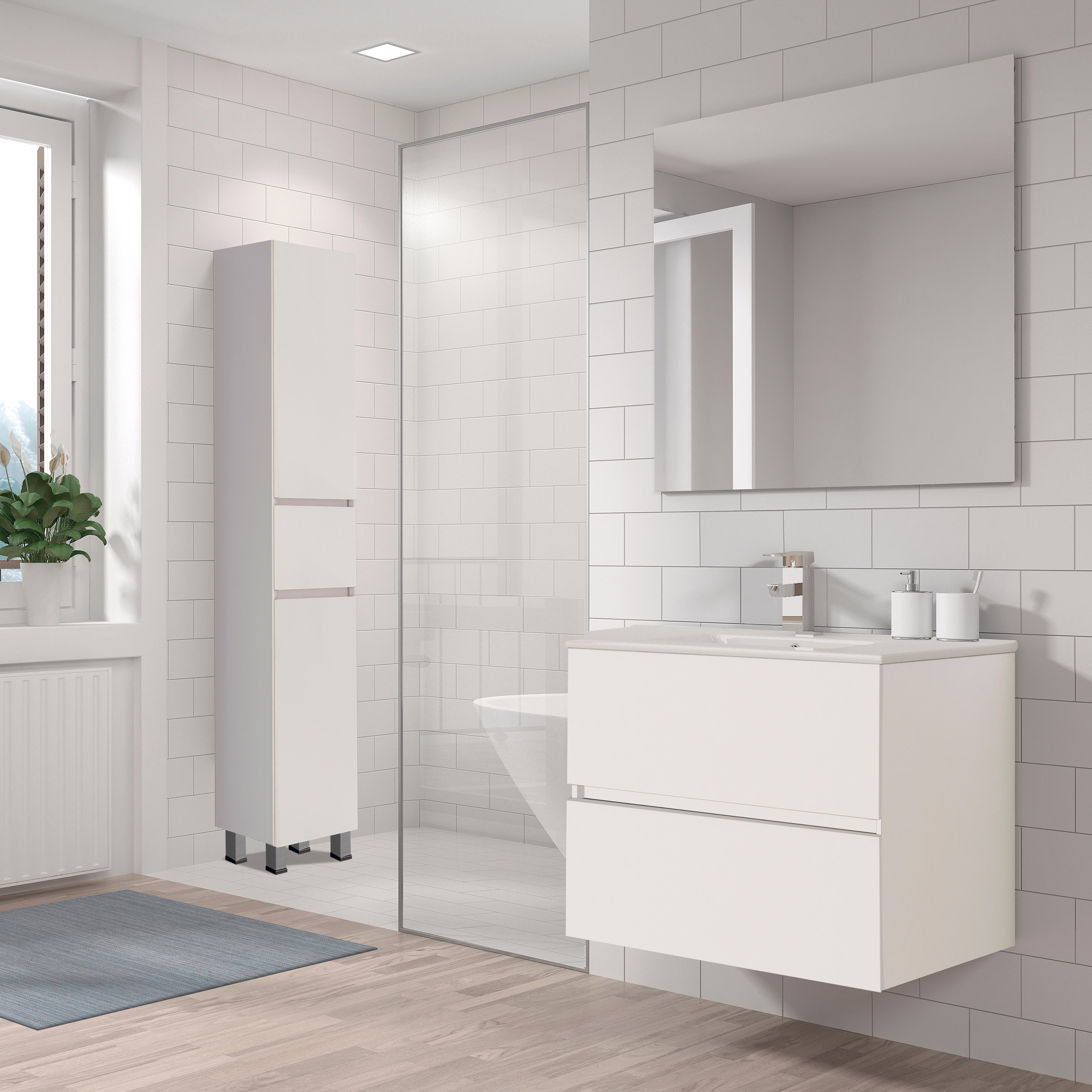 Ver productos de la misma categoríaConjunto mueble de baño suspendido, con espejo y lavabo, modelo Cancún. Color blanco. Medidas 54,5x70x46cm. Distribución de dos cajones.