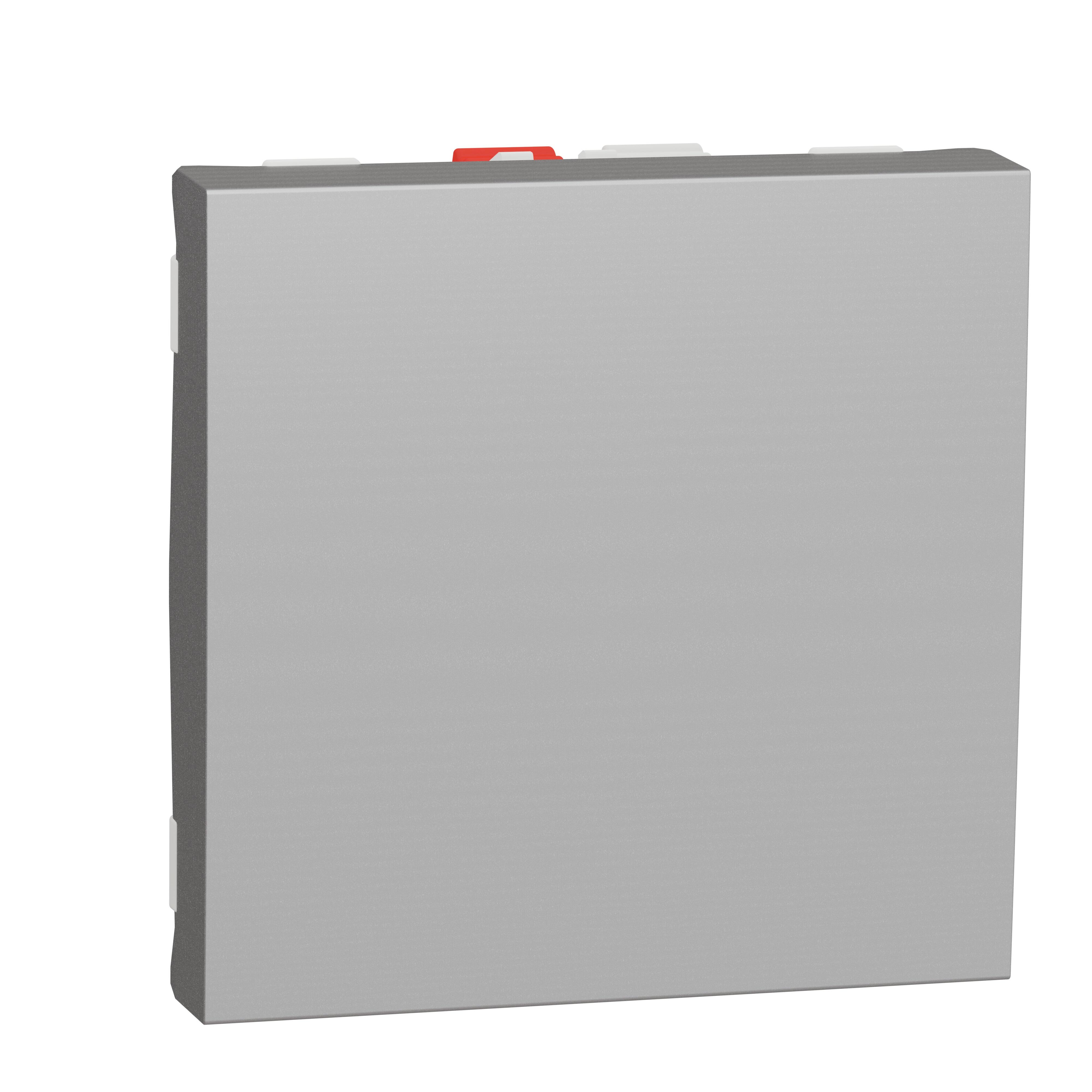 Interruptor/conmutador ancho de intensidad maxima 10A y 230vac, cableado por conexionado rápido. Acabado aluminio de la serie New Unica de Schneider. La serie New Unica se compone por bastidor + mecanismo + marco. Para completar su instalación debe elegir el bastidor adecuado, y el marco para el acabado deseado, que se venden por separado. La serie New Unica de Schneider dispone de bastidor para caja cuadrada universal y rectangular y de marcos dobles, triples o cuadruples en distintos acabados para completar su instalación.