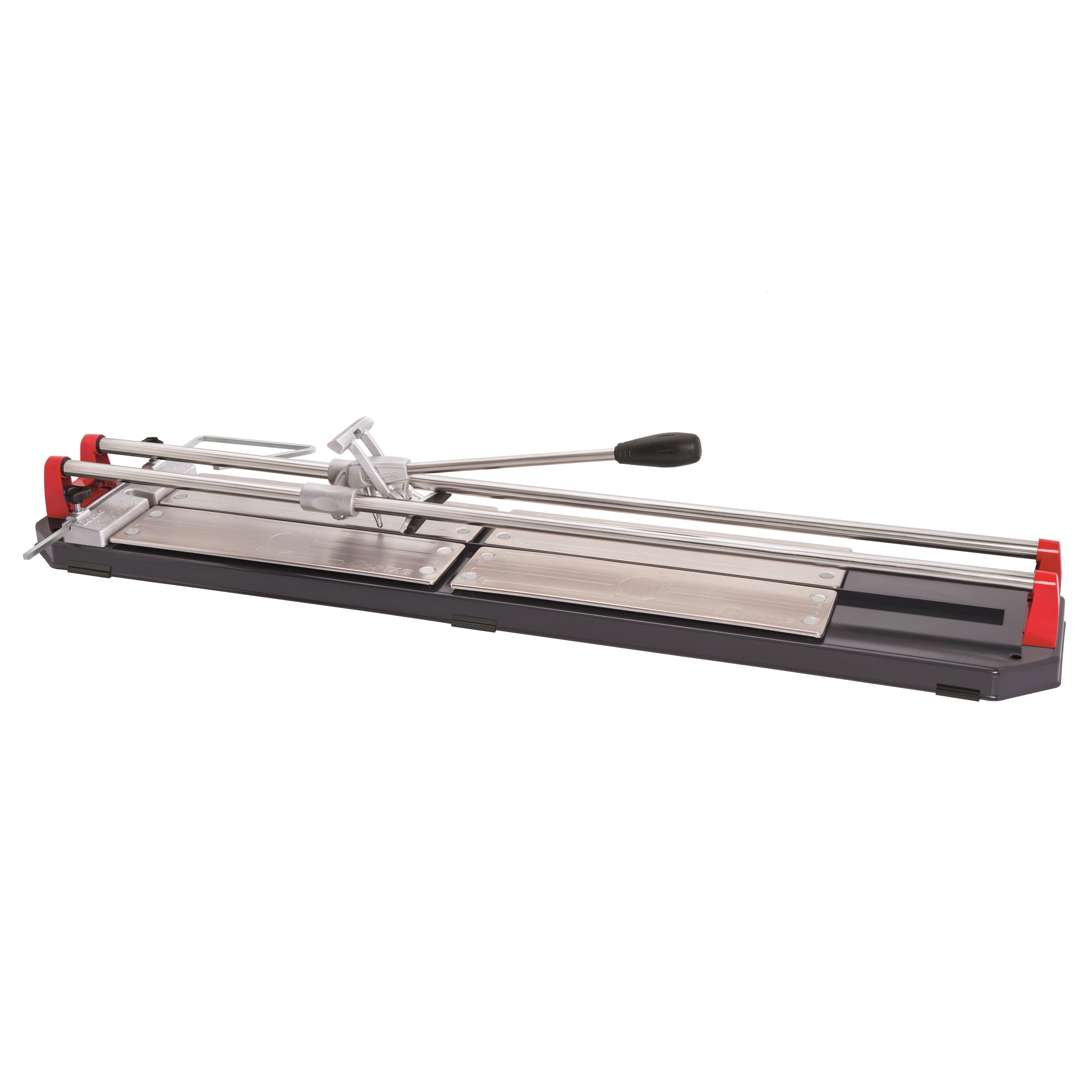 NEW MASTER 90. Corte cerámica y porcelánicos de hasta 90cm de longitud y de hasta 12mm de espesor. Corte diagonal máximo: 64x64cm. Separador móvil. Bases móviles niqueladas con amortiguación progresiva. Soporte de guía fabricado en aluminio inyectado. Incluye rodel Standard Ø7x100mm y tope lateral milimetrado.