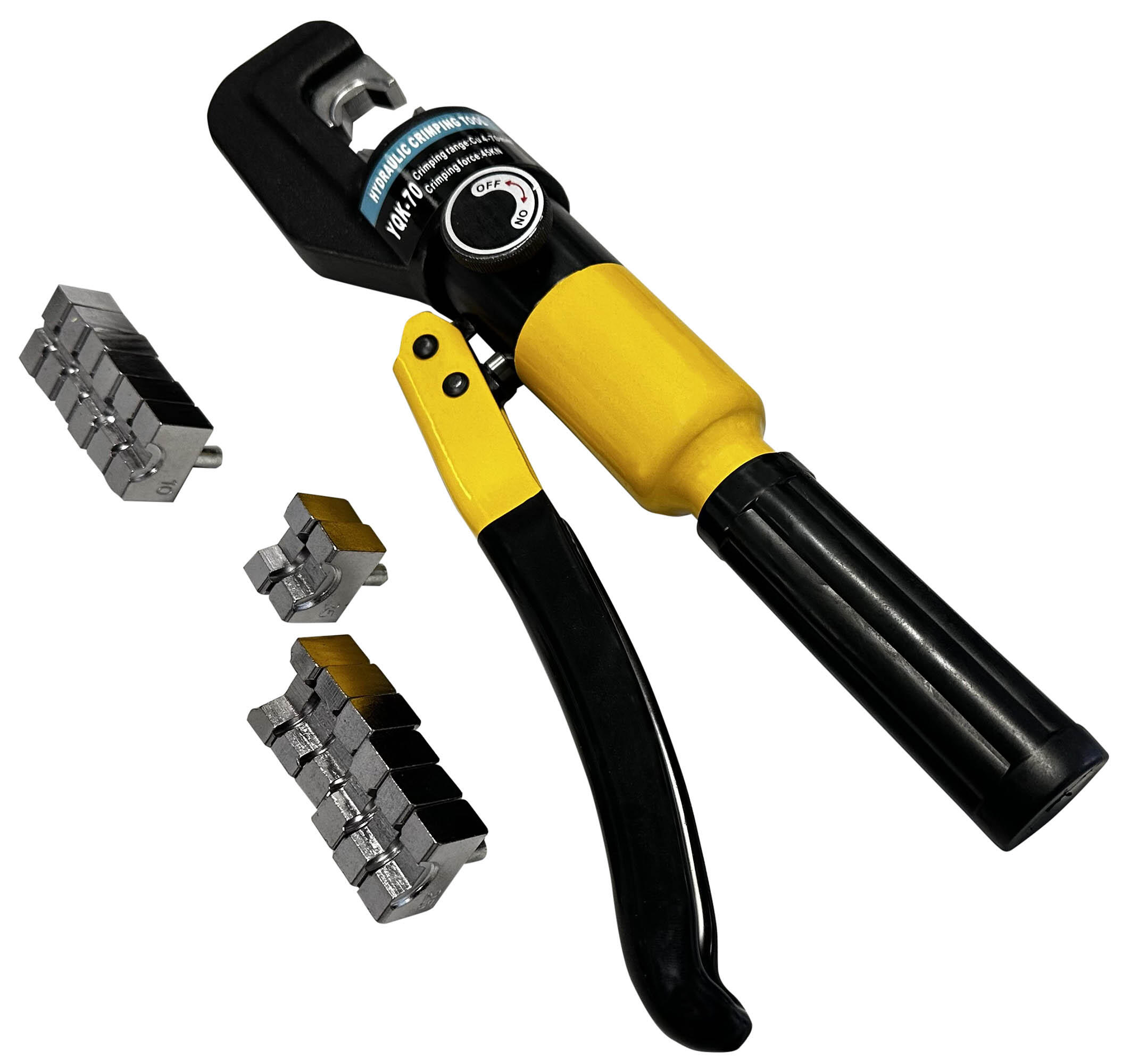Crimpadora, herramienta profesional para engarzar terminales de cable de batería está hecha de acero con tratamiento térmico. El cabezal es moldeado por fundición con alta densidad, que proporciona una presión más potente. Con 8 matrices de acero hexagonal 4