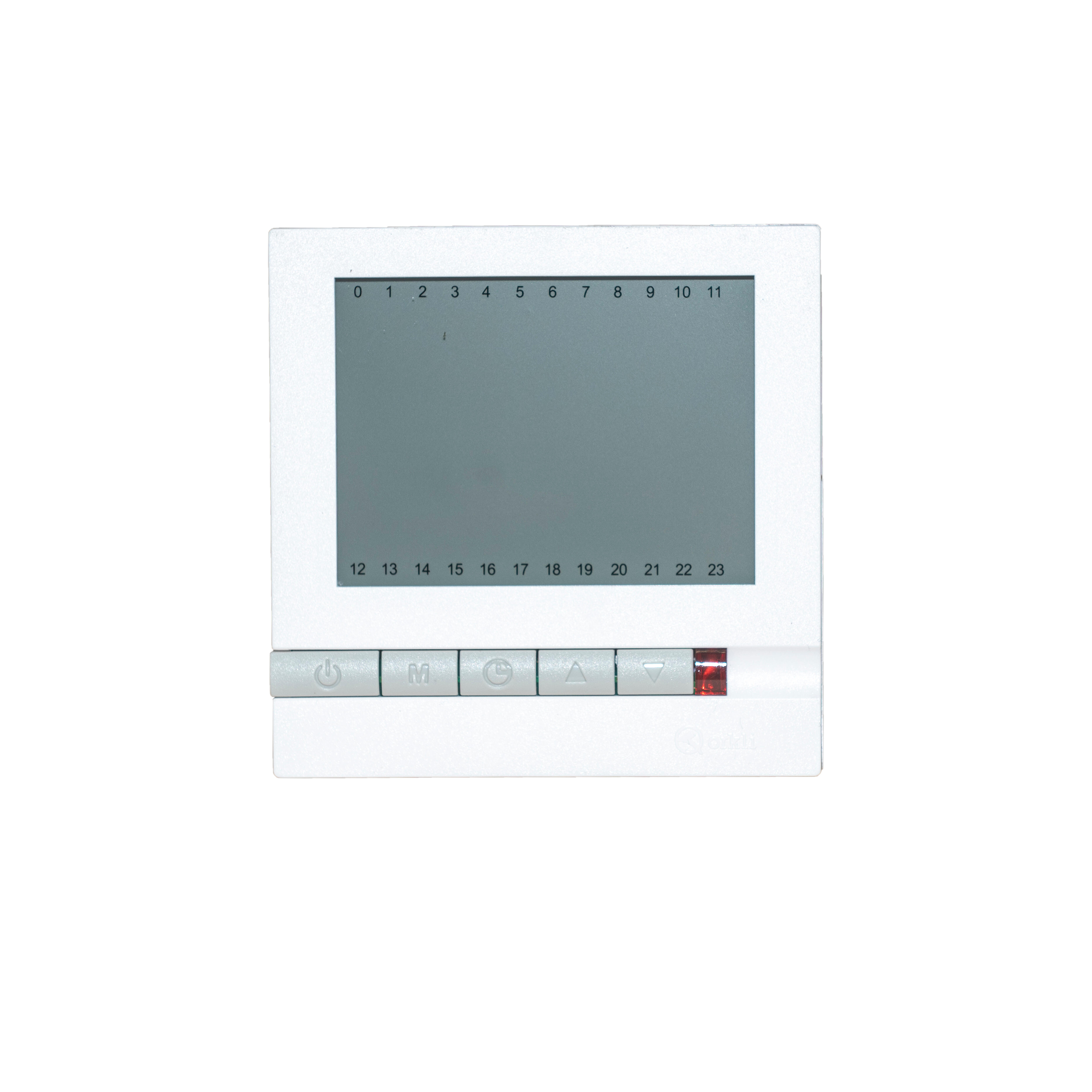 Cronotermostato digital que permite la regulacion de temperatura tanto en calefaccion como refrigeracion diaria en intervalos de media hora, posibilidad de configurar dos tipos de temperatura en cada modo de funcionamiento (calefaccion o refrigeracion). Regulación de temperatura de 5ºC a 30ºC.