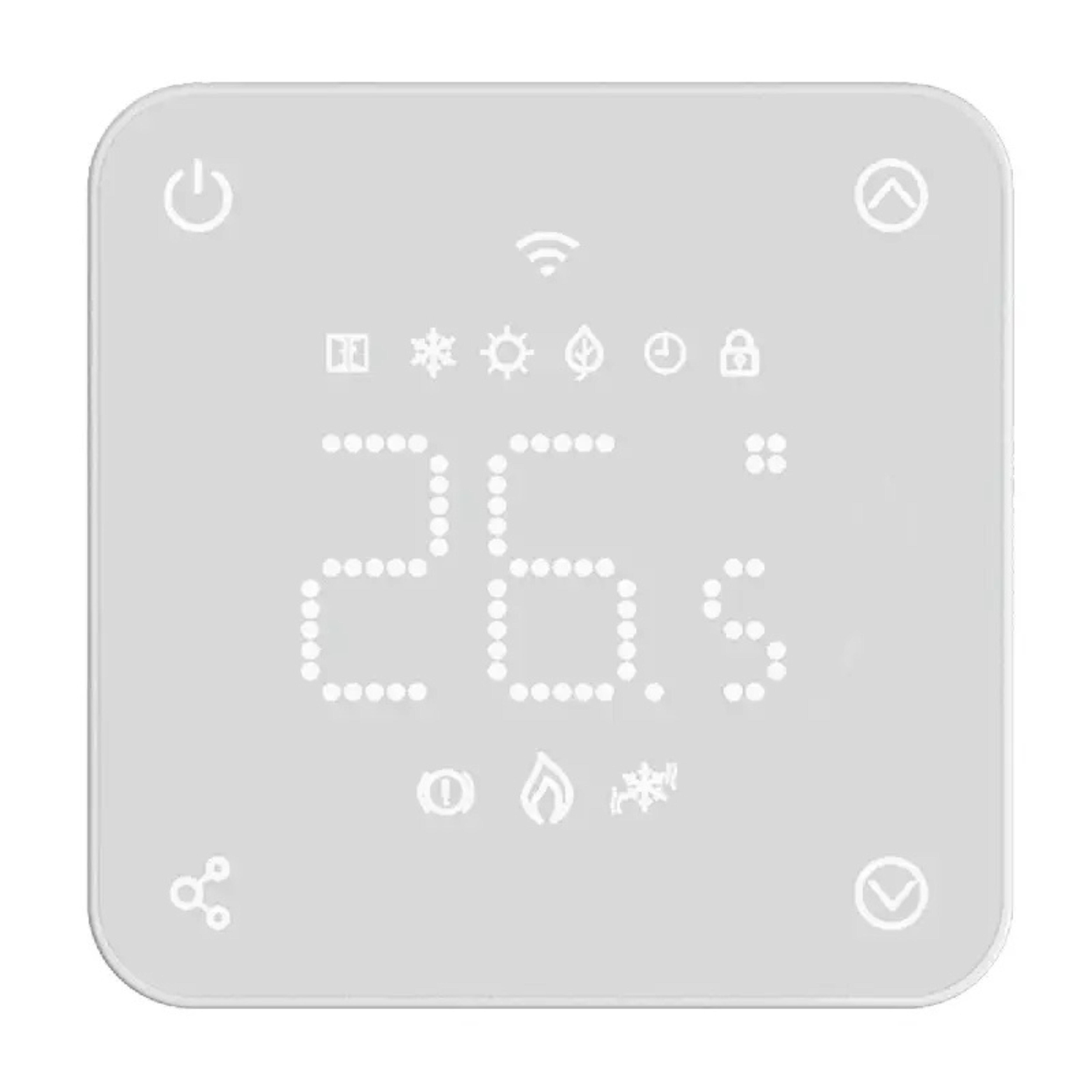 Termostato WiFi inalámbrico digital de Isoltubex. Este producto destaca por su diseño minimalista y compacto, con unas dimensiones de anchura de 10 cm, altura de 10 cm y una profundidad de tan solo 2,2 cm, lo que permite una instalación estética tanto en pared como en superficie horizontal.Este tipo de termostato ofrece un tipo de control intuitivo mediante una pantalla táctil y es totalmente controlable vía smartphone a través de su aplicación dedicada. Es un dispositivo altamente programable (Modo PRG) que permite una gestión precisa del control de calefacción y refrigeración, siendo ideal para sistemas de suelo radiante. Su rango de temperatura de trabajo abarca desde los 5°C hasta los 35°C, garantizando una excelente sensibilidad con un diferencial de +/- 1°C para un control de habitación óptimo.Además, su compatibilidad técnica lo posiciona como una solución profesional para cualquier lugar de uso residencial que requiera un control térmico inteligente e inalámbrico.
