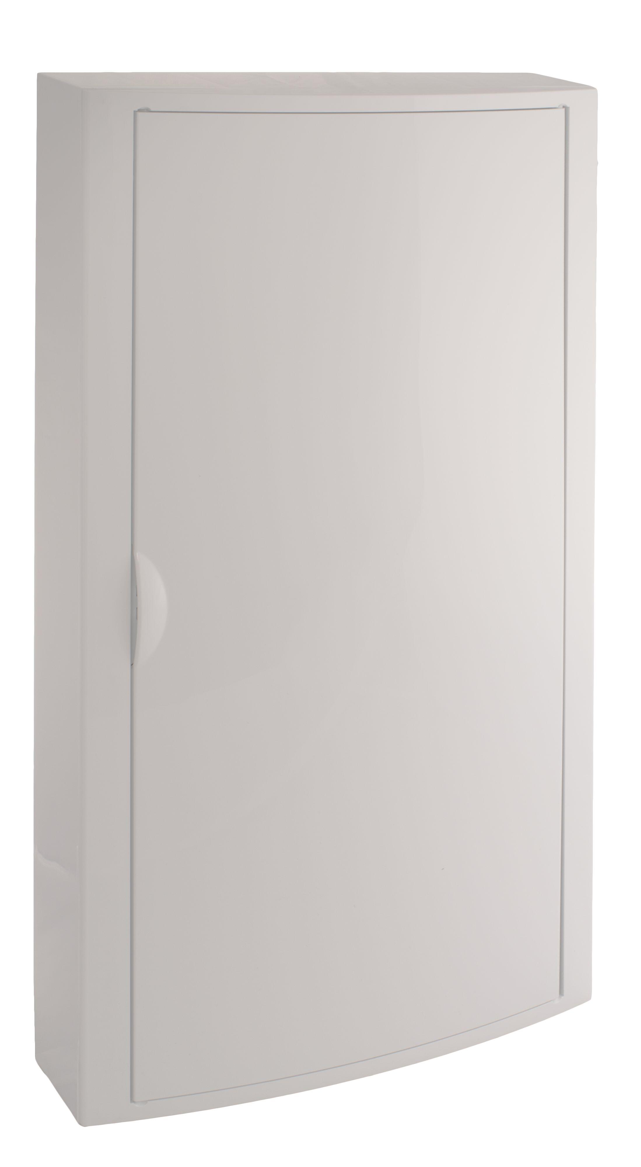 Cuadro eléctrico para superficie en vivienda de 56 elementos IP40 Solera. Distribuidos en 4 filas. Color blanco. Medidas 36,2x68,6x10,4 cm. Con puerta.