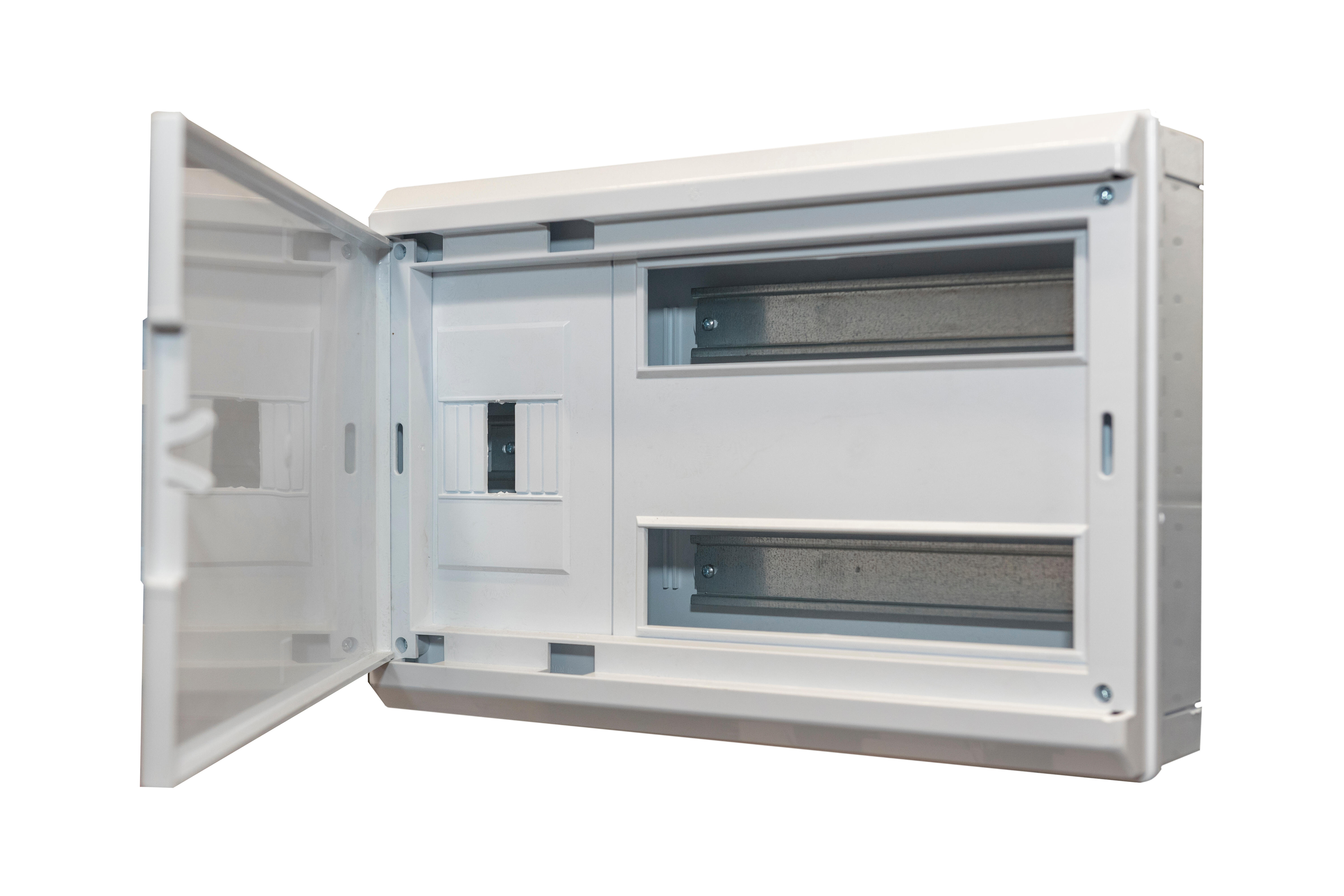 Cuadro eléctrico para superficie en vivienda de ICP+24 elementos IP40 solera. Caja, tapa, marco y puerta, para instalar en superficie, conjunto blanco, 41x27x6,8 cm + 4 cm de profundidad del marco.