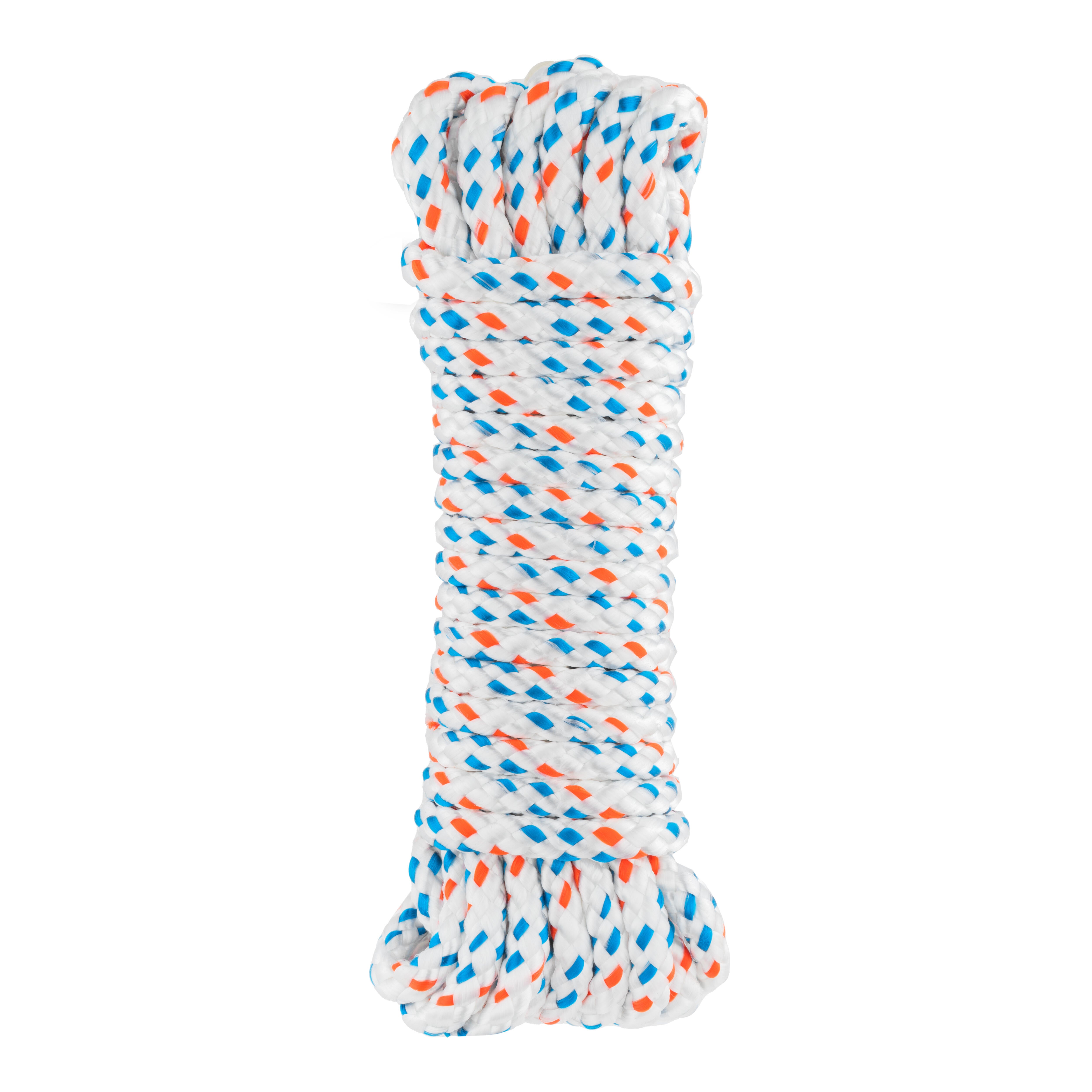 Cuerda poliéster trenzada 3.8mm 20m blanca con pintas azul y naranja ROMBULL. Esta cuerda es ideal para múltiples aplicaciones tanto en el hogar como en entornos profesionales, gracias a su resistencia y versatilidad.