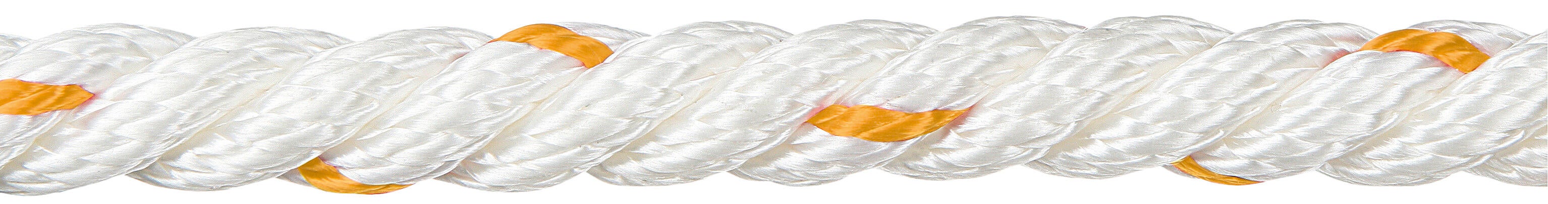 CUERDA POLIPROPILENO CABLEADA 14MM. 1M BLANCO CON PINTAS AMARILLAS ROMBULL