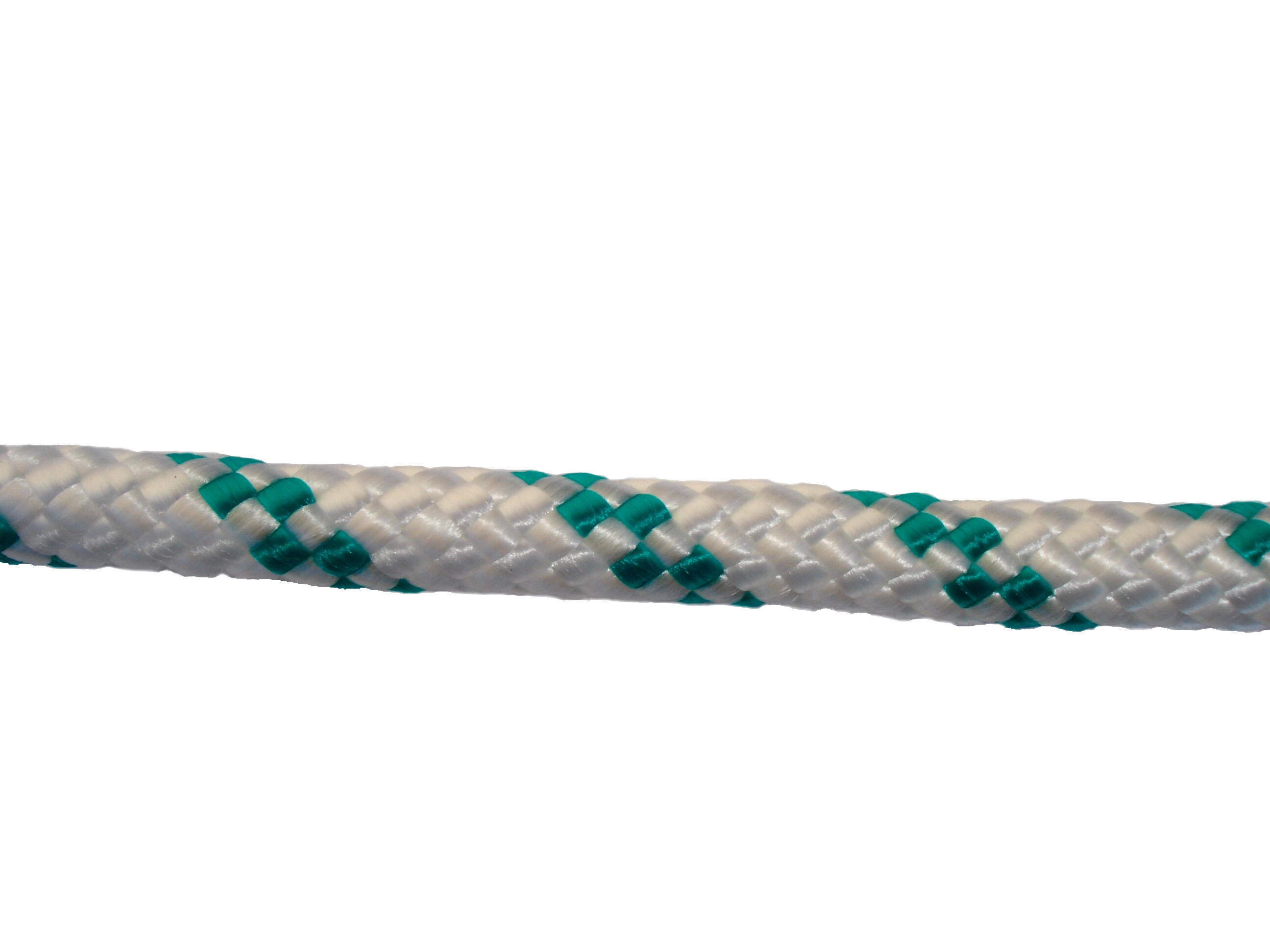 CUERDA POLIPROPILENO TRENZADA CON ALMA 6MM. 1M BLANCO CON PINTAS VERDES ROMBULL