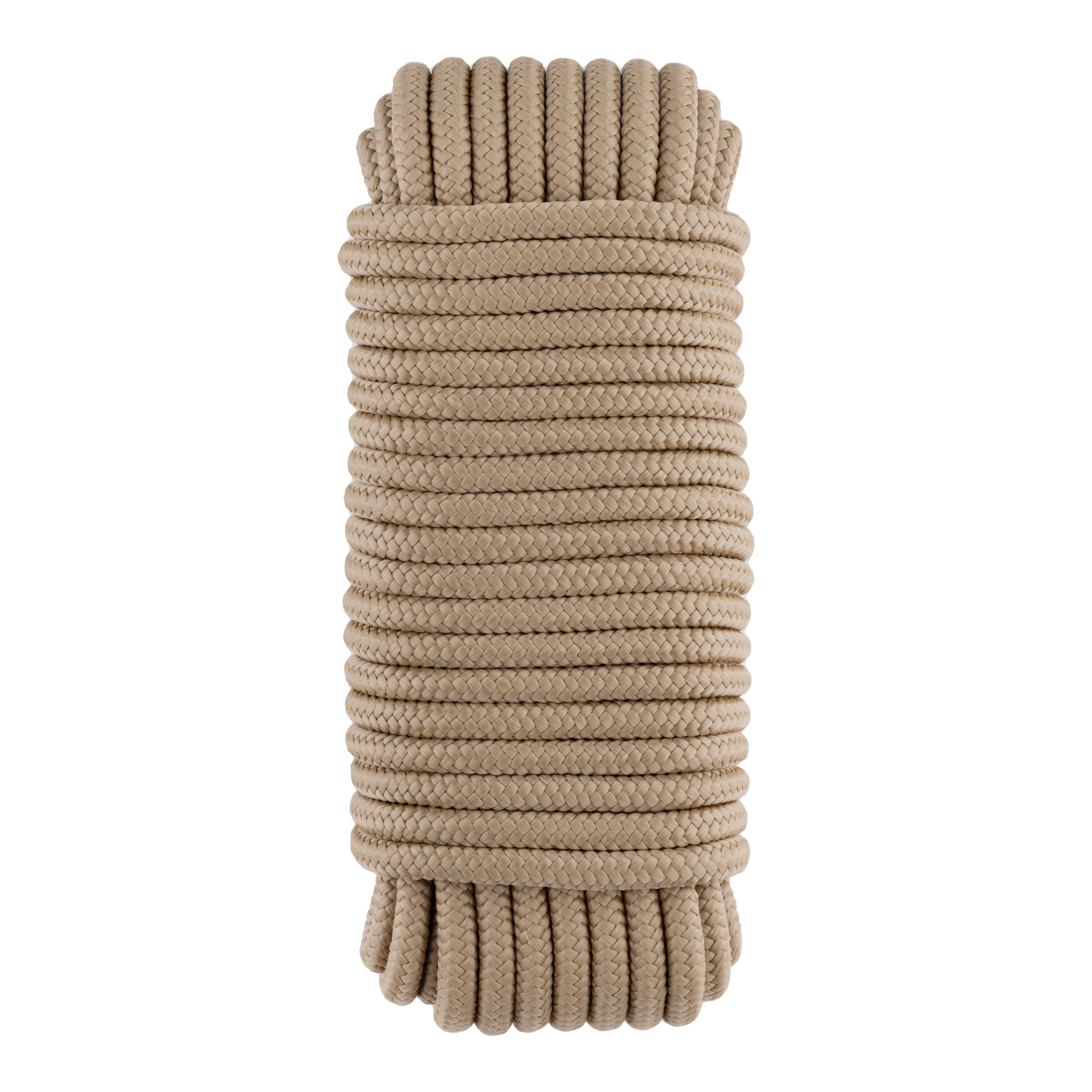 Cuerda polipropileno trenzada con alma, grosor de 8mm y longitud de 15m en color camel de la marca Rombull.