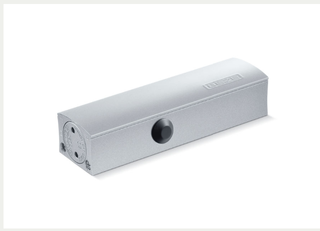 Cuerpo de cierrapuertas aéreo de brazo de bloqueo para puertas de hoja simple. Color plata. Posibilidad de instalarse en puertas que cierran a la derecha o a la izquierda sin modificación Para anchos de hoja de hasta 1100 mm Dos fuerzas de cierre posibles, simplemente girando el soporte del brazo de tijera: fuerza de cierre 'débil' para anchos de hoja de hasta 950 mm = fuerza 3 / fuerza de cierre 'fuerte' para anchos de hoja de hasta 1100 mm = fuerza 4 (según EN 1154) Velocidad de cierre ajustable