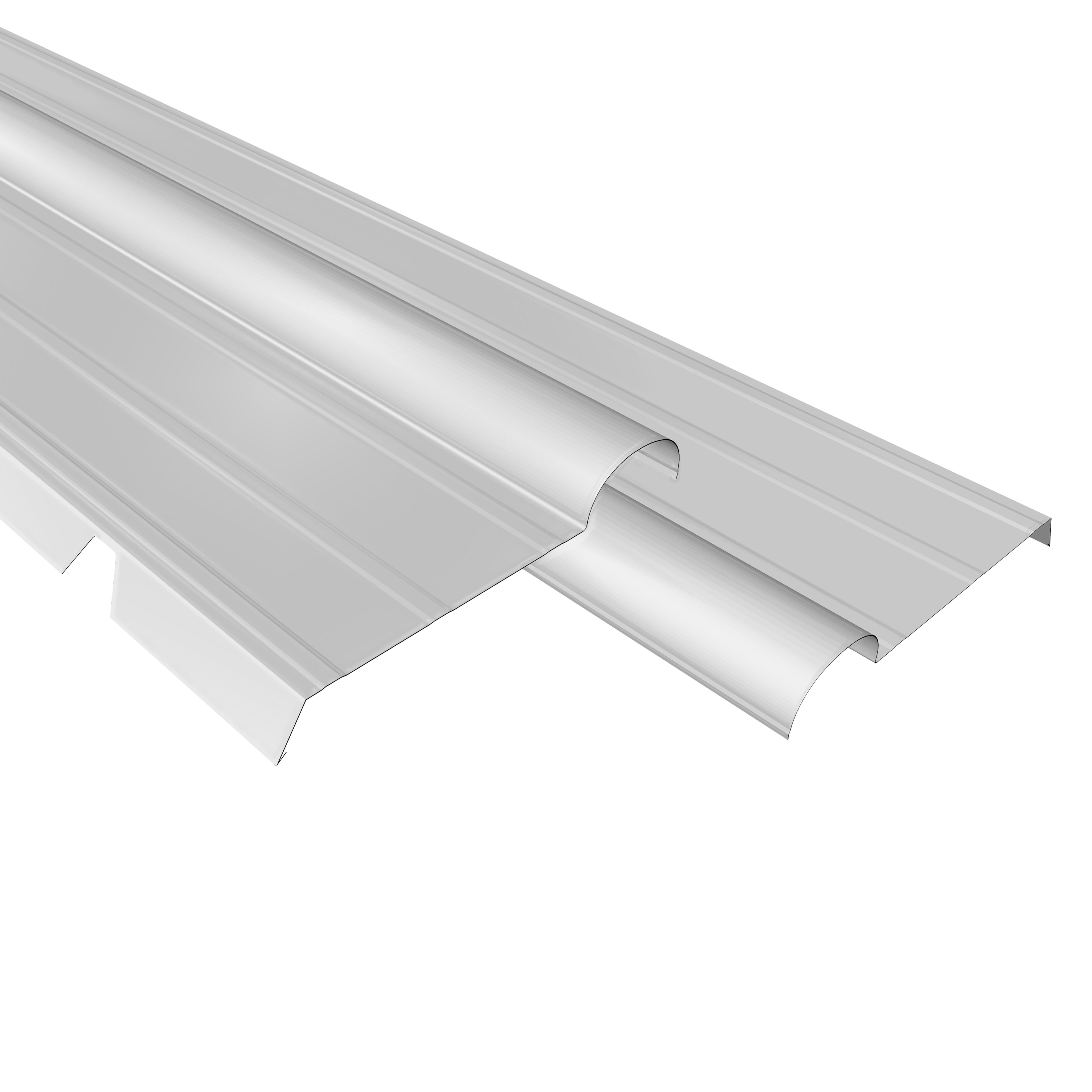 Anchura total compuesta por 2 piezas articuladas de 253 mm cada una como cumbrera o caballete articulado para panel sandwich Isotego. Desarrollo plano de 15,8 cm cada una más el montante.
