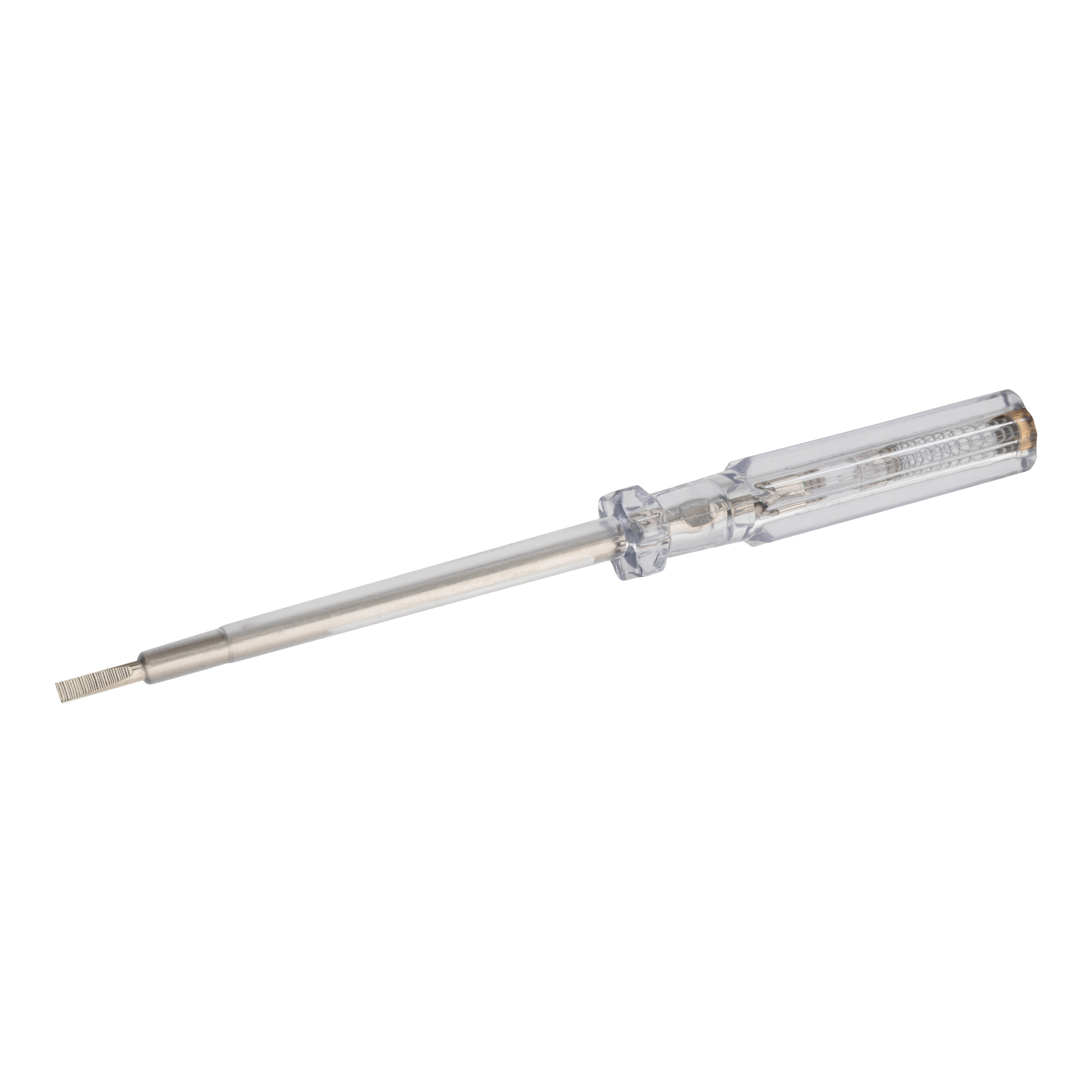 Destornillador buscapolo 4x190mm. Mango en ABS. Tensión 220-250 V. Cuenta con un tubo transparente en cuyo interior se encuentra una resistencia de neón de alta visibilidad.