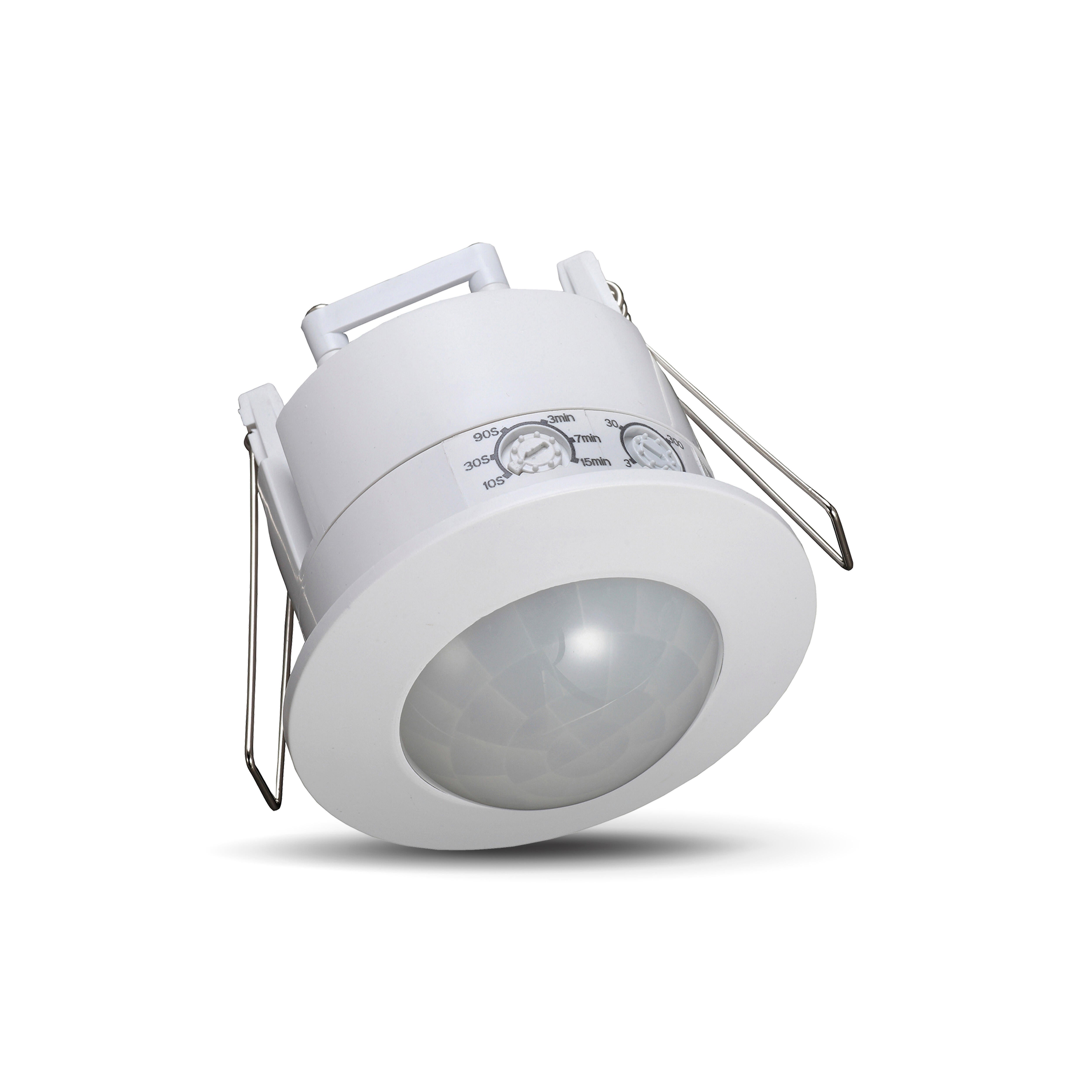 Detector de movimiento de infrarrojos para empotrar en falso techo y area de cobertura de 6 metros de diametro. alimentacion a 230v ac.