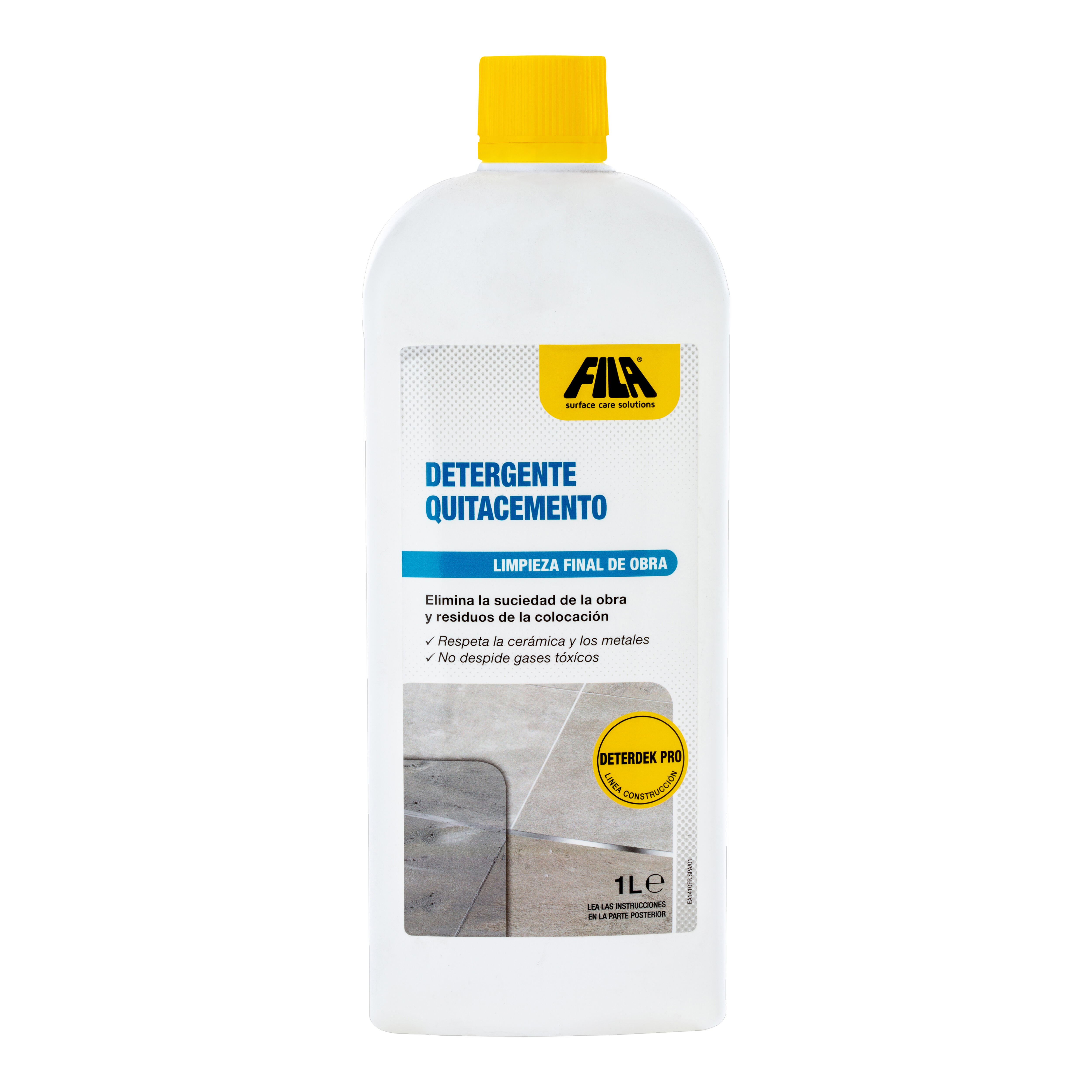 Detertek, es un detergente que sirve para la limpieza final de obra. Elimina la suciedad provocada por la colocación del material y en general la suciedad de la obra. Elimina salitres y eflorescencias salinas. También elimina las incrustaciones de tipo calcáreo de pavimentos y revestimientos sanitarios. Es eficaz para eliminar manchas de óxido y rayas de metales. Se presenta en formato de 1 litro. Ideal para gres porcelánico, cerámica, piedra natural, barro y gres extrusionado.