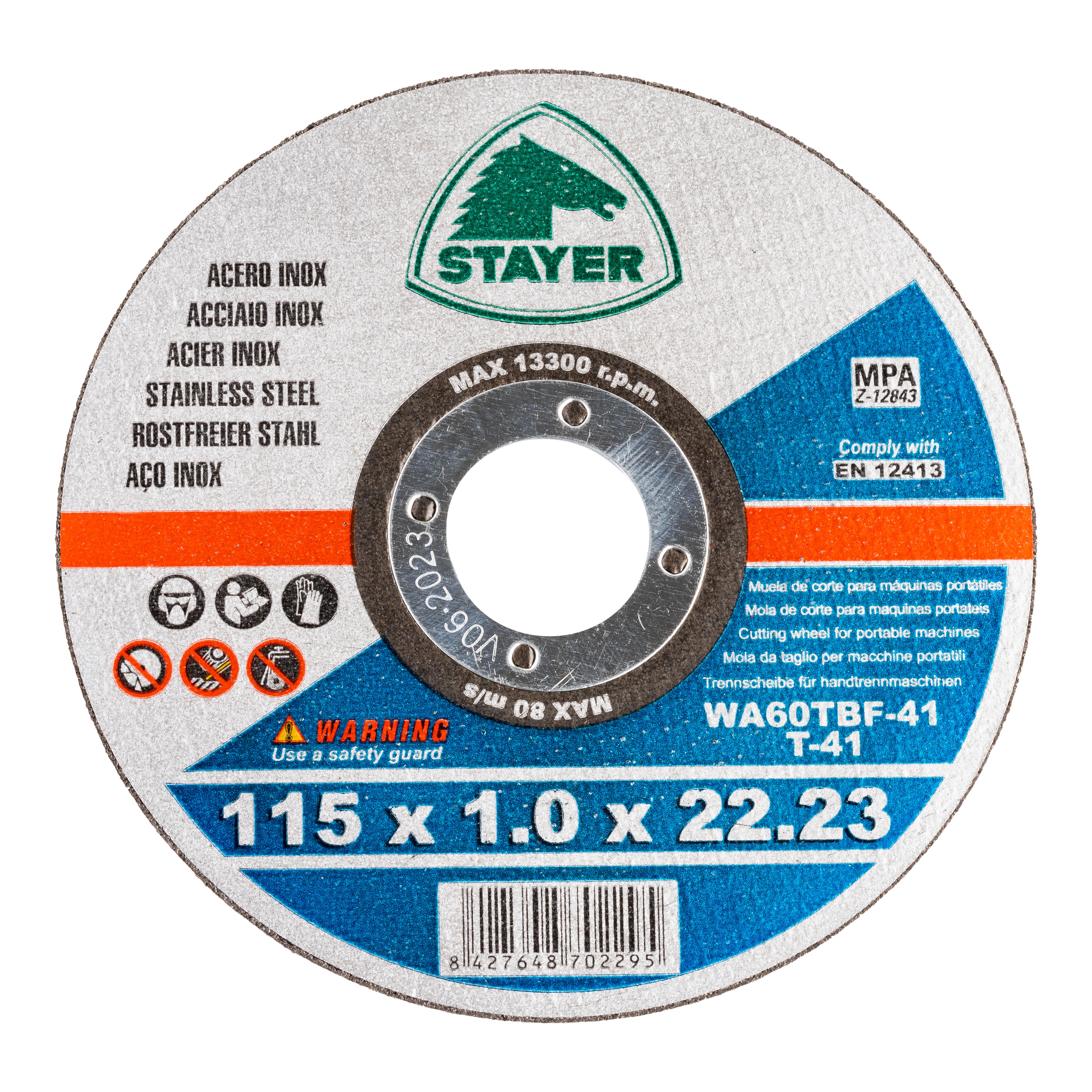 DISCO AMOLADORA CORTE FINO METAL INOX 115MM STAYER 100UDS