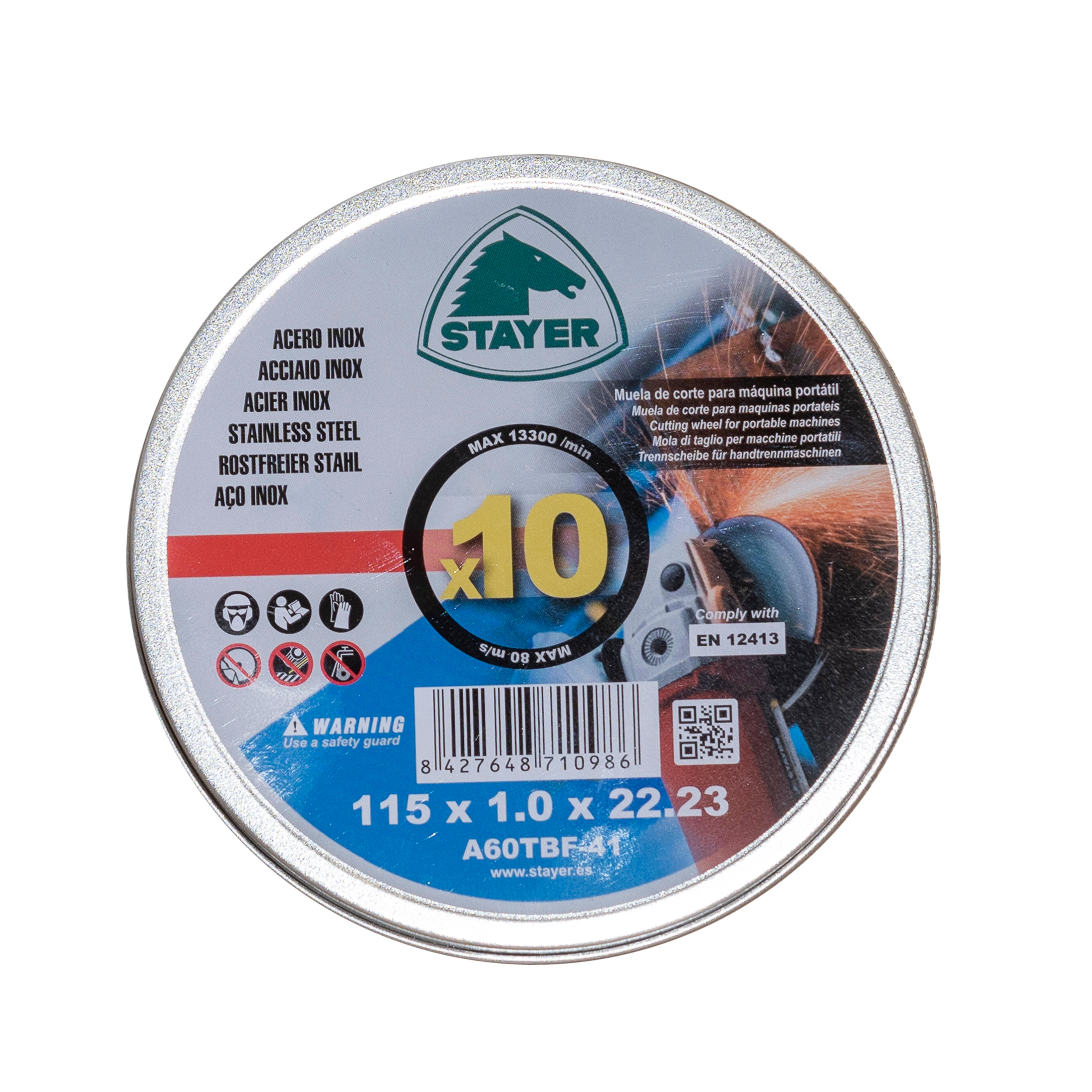 DISCO AMOLADORA CORTE FINO METAL INOX 115MM STAYER 10UDS