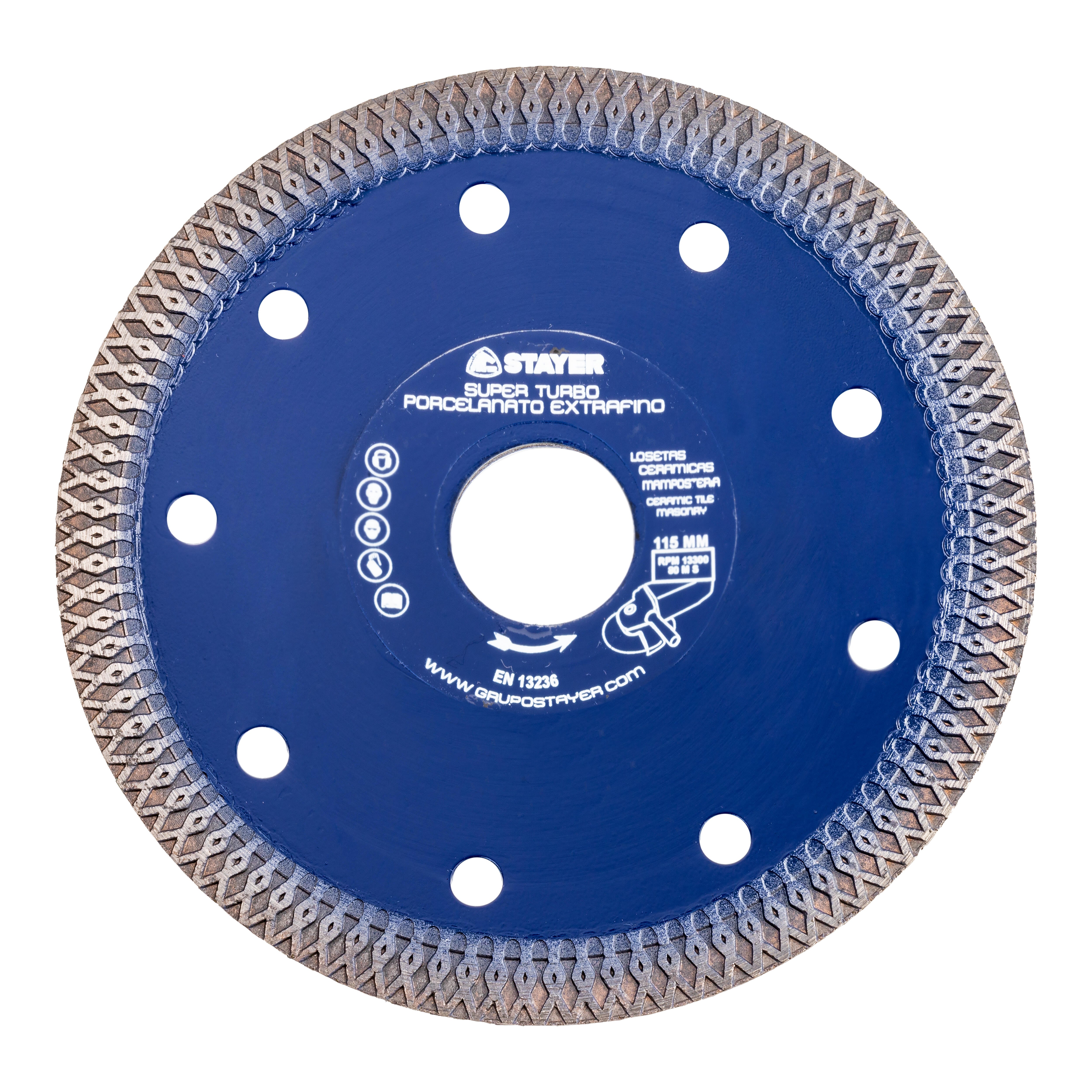 DISCO DE DIAMANTE AMOLADORA CORTE PORCELÁNICO BANDA CONTÍNUA TURBO EXTRAFINO 115MM STAYER