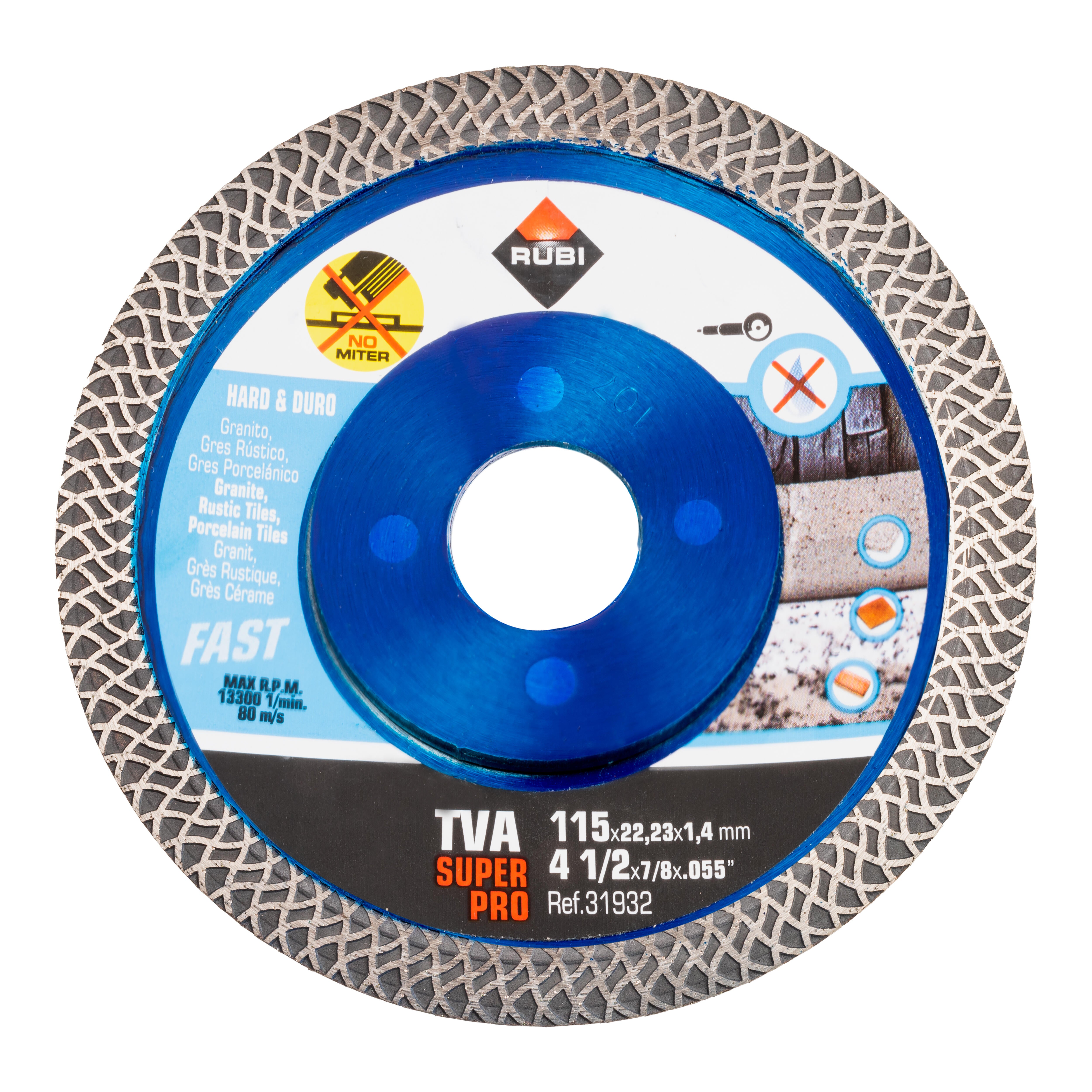 DISCO DE DIAMANTE AMOLADORA CORTE PORCELÁNICO BANDA CONTÍNUA TURBO TVA 115MM RUBI