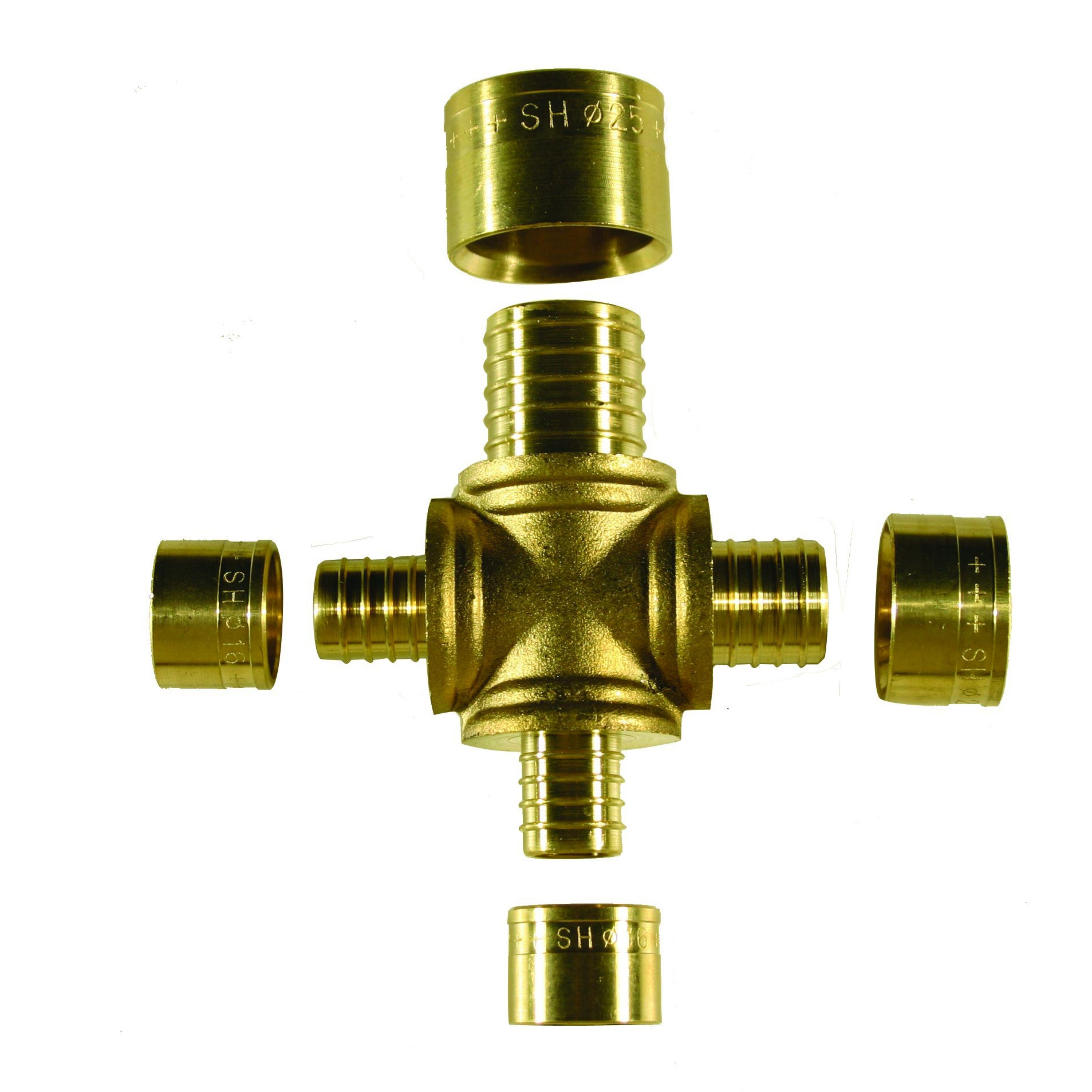 Accesorio de Casquillo corredizo para tubo PEX-a. •Distribuidor en cruz 20-20-16-16mm.