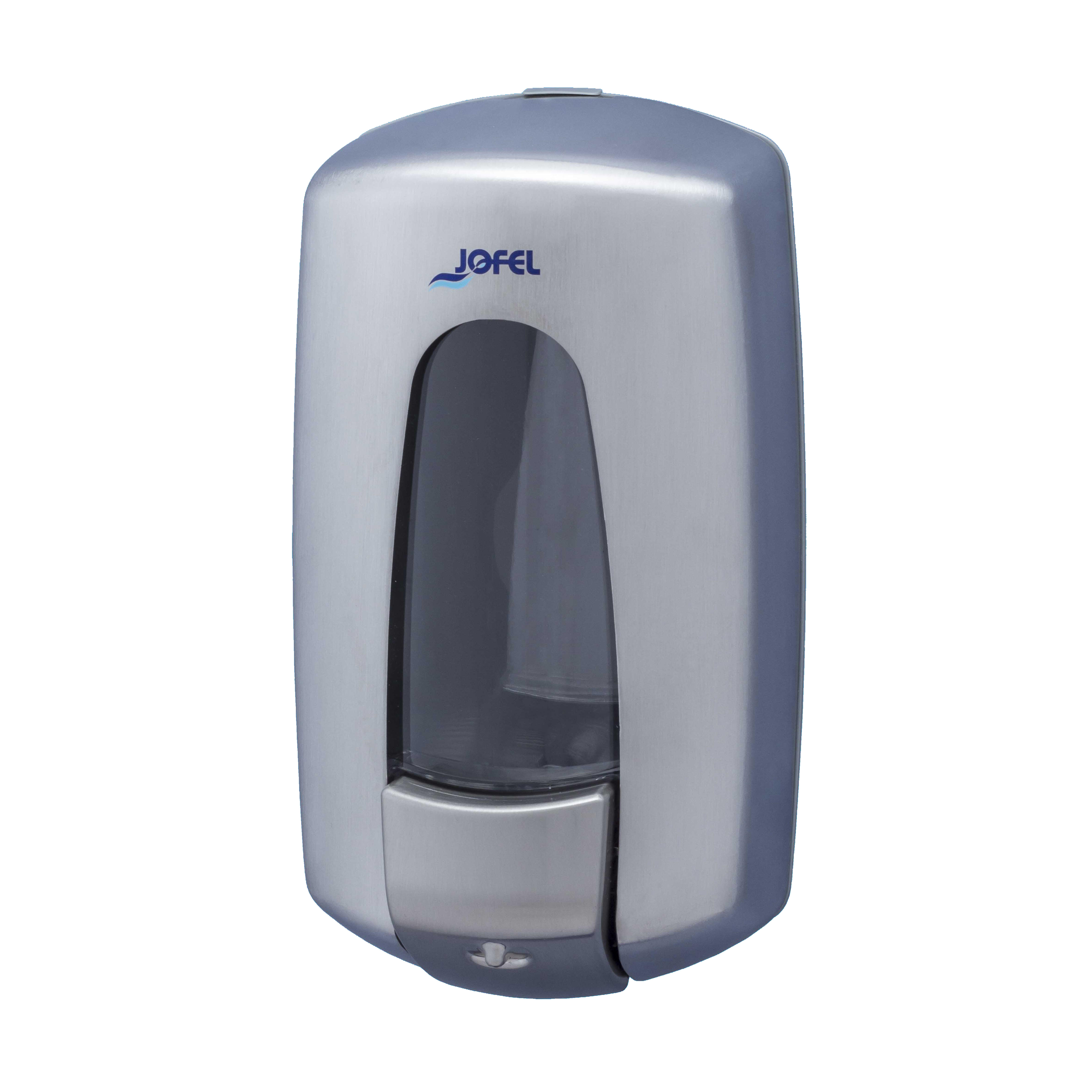 Dosificador de jabón líquido y gel hidroalcohólico con depósito rellenable depósito transparente en san de 0,900 l, carcasa en acero inox satinada de alta calidad cerradura con llave, válvula anticorrosión y antigoteo en el pulsador vision total carga. Ideal para colocar en oficinas, hoteles, hospitales o residencias. Con visor de jabon e hidrogel. Fijación a pared mediante tornillos ( incluidos)