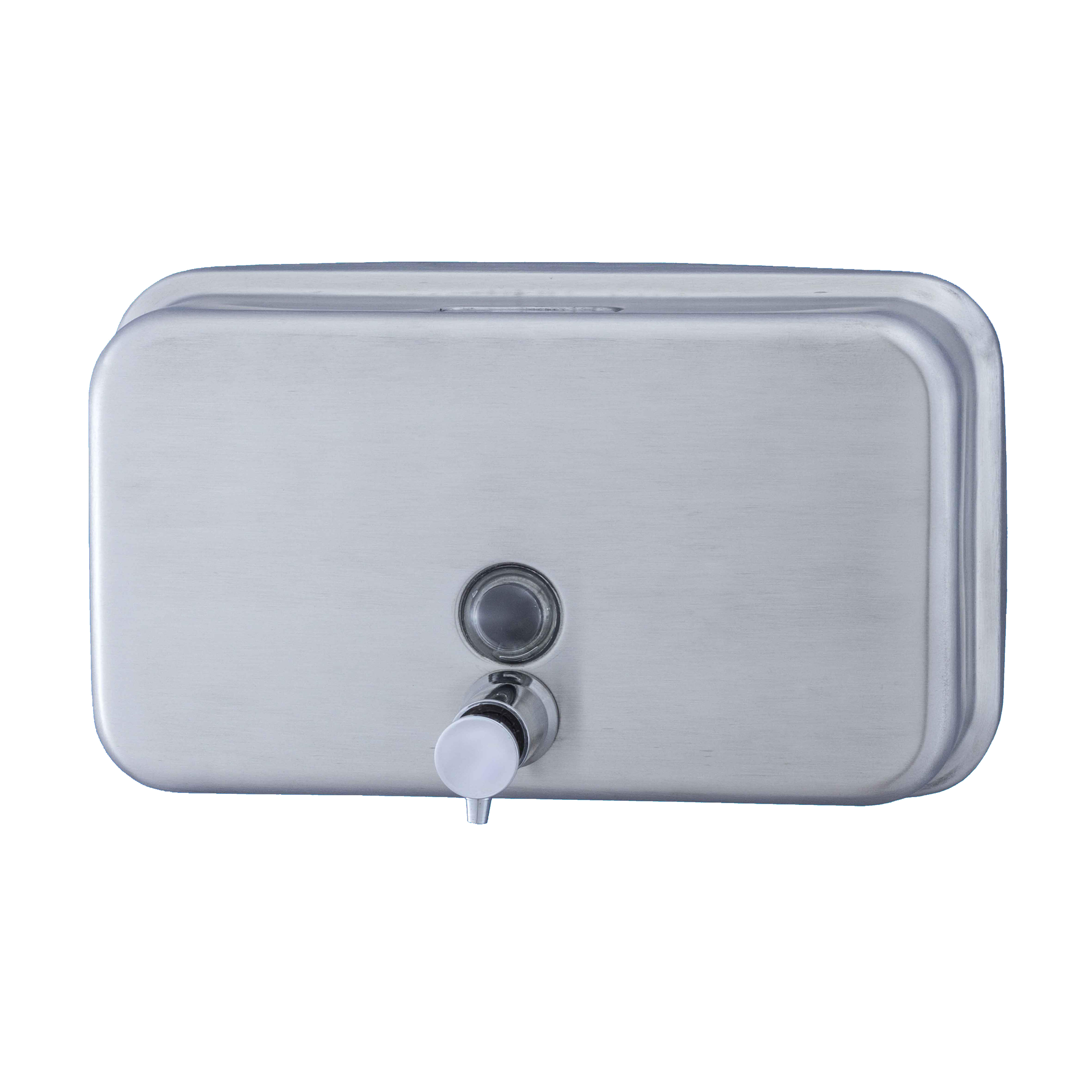 Dosificador horizontal de jabón líquido y gel hidroalcohólico rellenable, carcasa y soporte en acero inox satinado, visor de carga pulsador con válvula antigoteo y anticorrosión, antivandálico. Ideal para colocar en oficinas, hoteles, hospitales o residencias. Fijación a pared mediante tornillos ( incluidos)