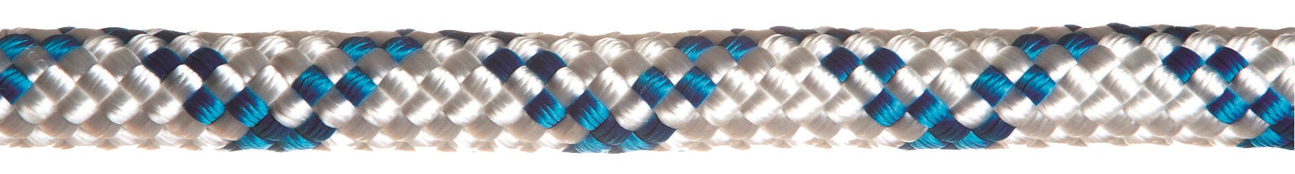 m de driza realizada en poliester de 12 mm en color blanco con pintas azules