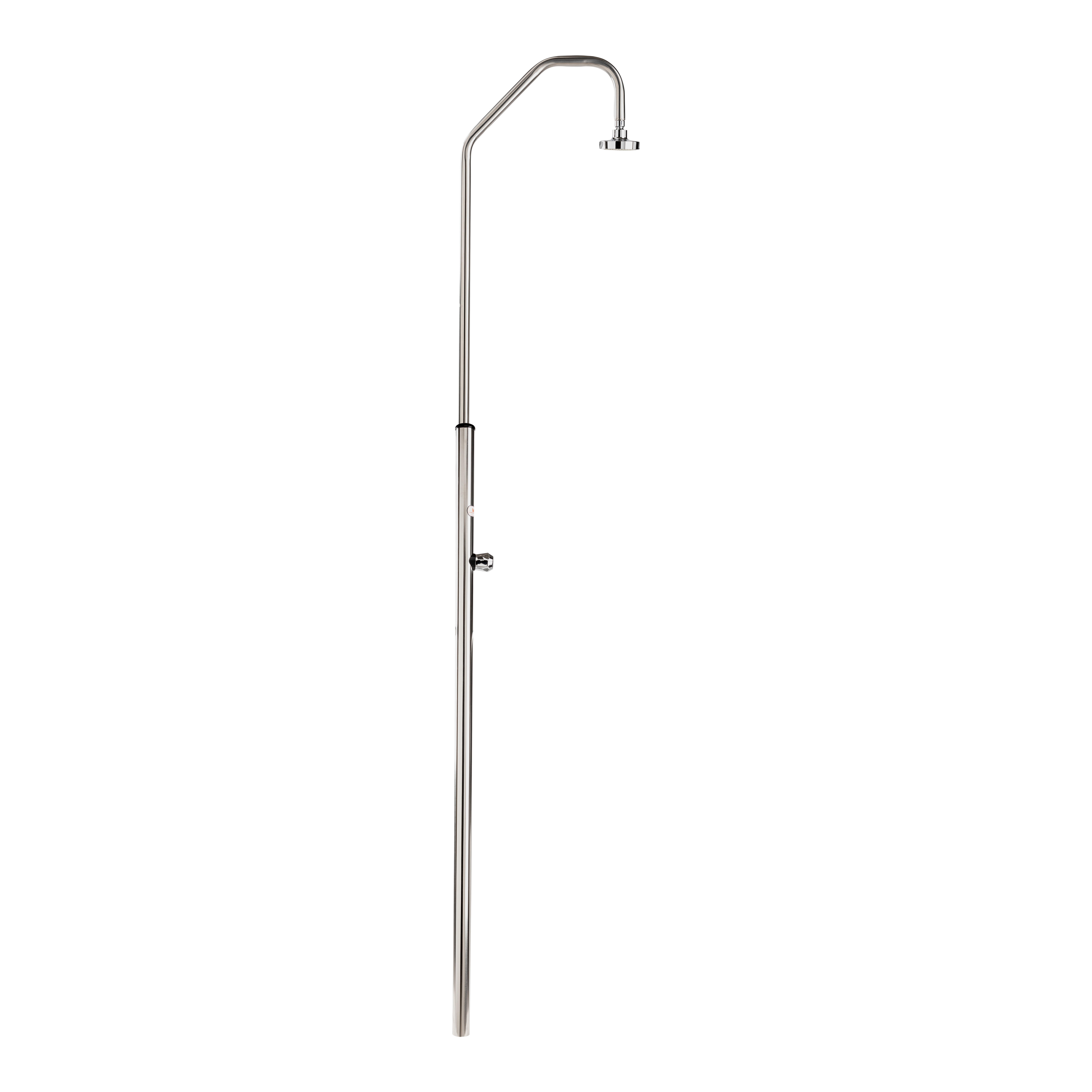 Ducha sencilla para piscina con cuerpo de acero inoxidable 304, con un solo brazo , tubo de 43 mm de diámetro. Altura: 2,20 metros. Incluye los anclajes.