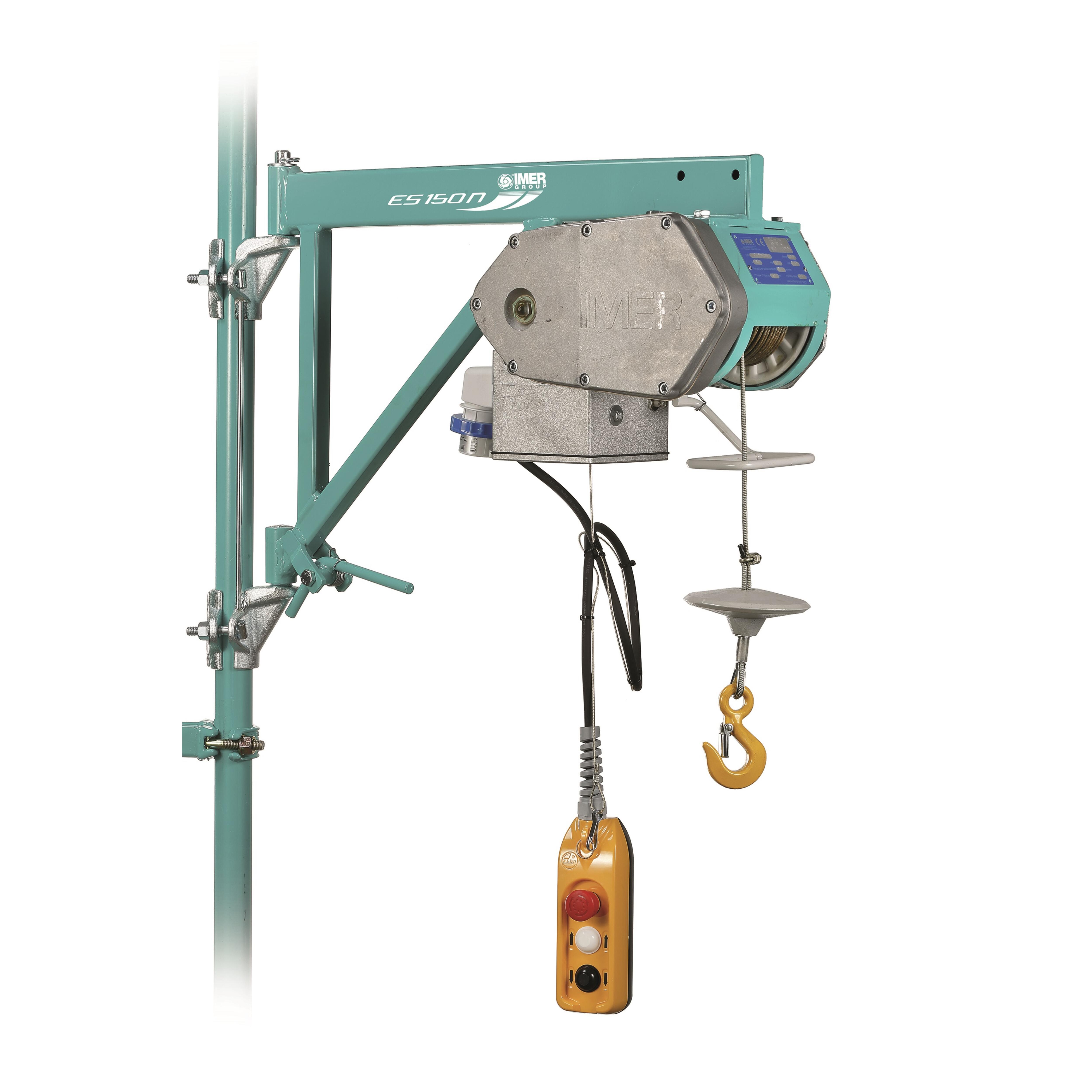 Elevador eléctrico 150Kg, altura máxima de elevación 30m Imer ES-150N. Potencia 450W. Diámetro del cable 5mm. Velocidad de elevación 19m/min.