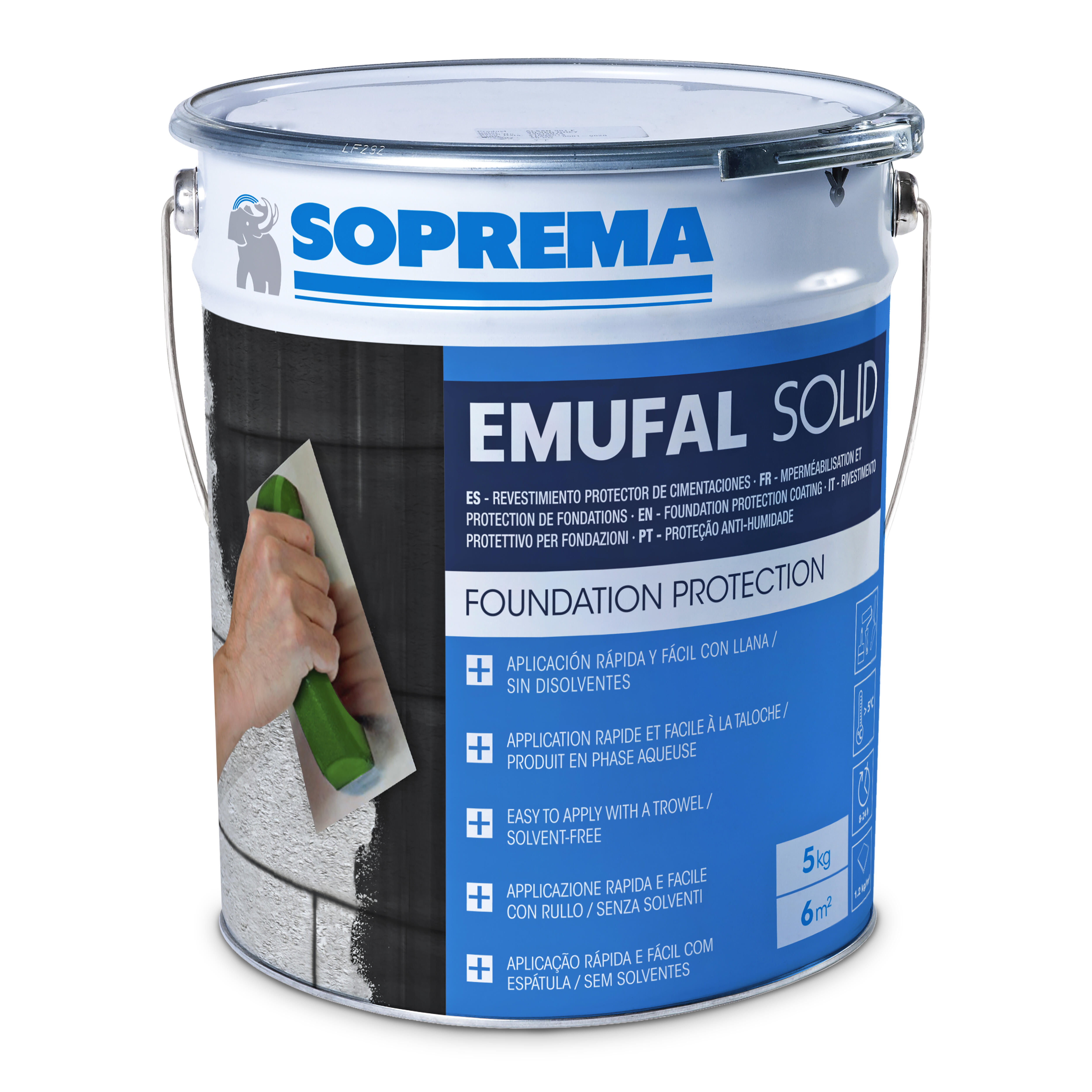 Emulsión bituminosa EMUFAL de consistencia viscosa y aplicación en frío. Indicada para la preparación de soportes tratados por productos asfálticos y como adhesivo de montaje para aislamiento . Protección frente a la humedad en muros de hormigón, paredes y medianeras actúan sobre la cara en contacto con el terreno. Bote de 5 kg.