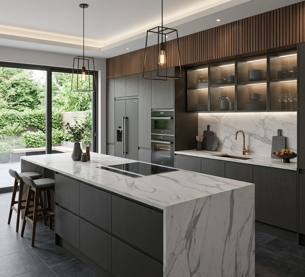 La piedra sinterizada o porcelánico de Seriestone es el material más innovador y resistente del mercado para encimeras de cocina. Fabricado con materiales naturales y sostenibles, es apto tanto para interiores como para exteriores gracias a su alta resistencia a los rayos UV