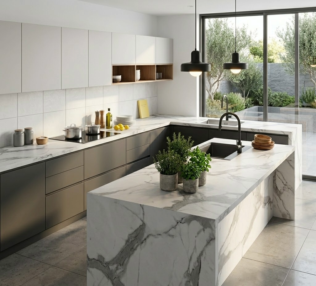 ENCIMERA ACABADO CALACATTA BLANCO 180 X 63 X 3,8 CM