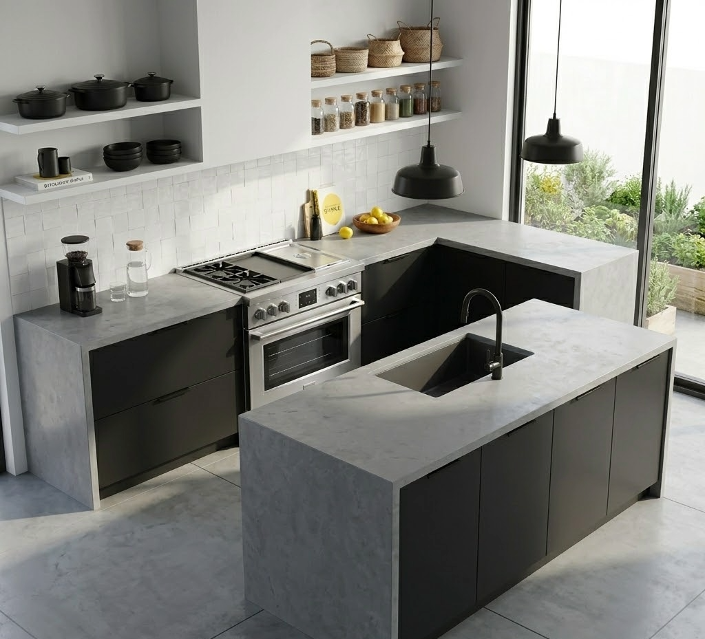 La piedra sinterizada o porcelánico de Seriestone es el material más innovador y resistente del mercado para encimeras de cocina. Fabricado con materiales naturales y sostenibles, es apto tanto para interiores como para exteriores gracias a su alta resistencia a los rayos UV