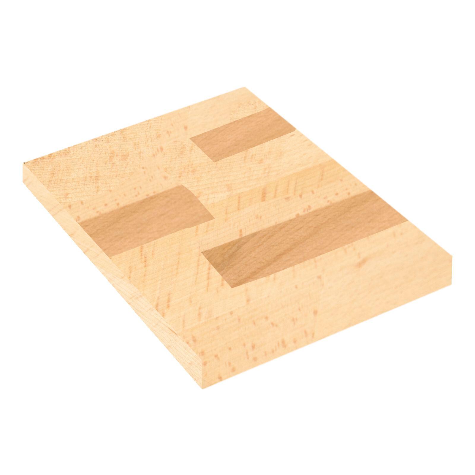 Soporte de madera de haya alistonada cruda. Se recomienda tratarla para un mejor comportamiento frente al agua.Canto recto.