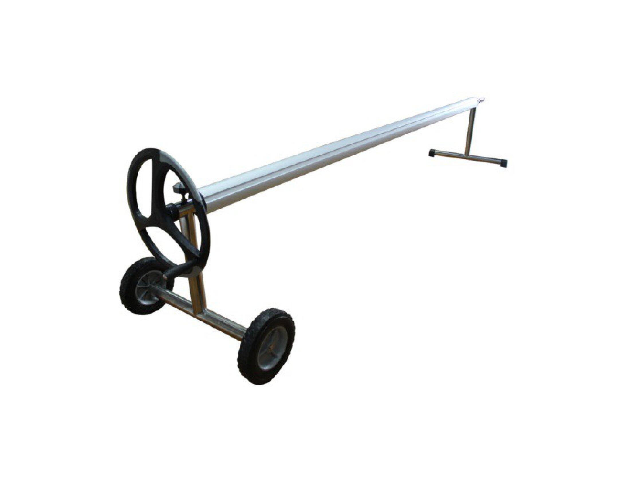 Enrollador solar de fácil transporte gracias a las ruedas incorporadas en uno de los soportes. Es telescópico, permitiendo su extensión en función de nuestras necesidad y almacenamiento en época de invernaje. Fabricado en aluminio con soportes en acero inoxidable.