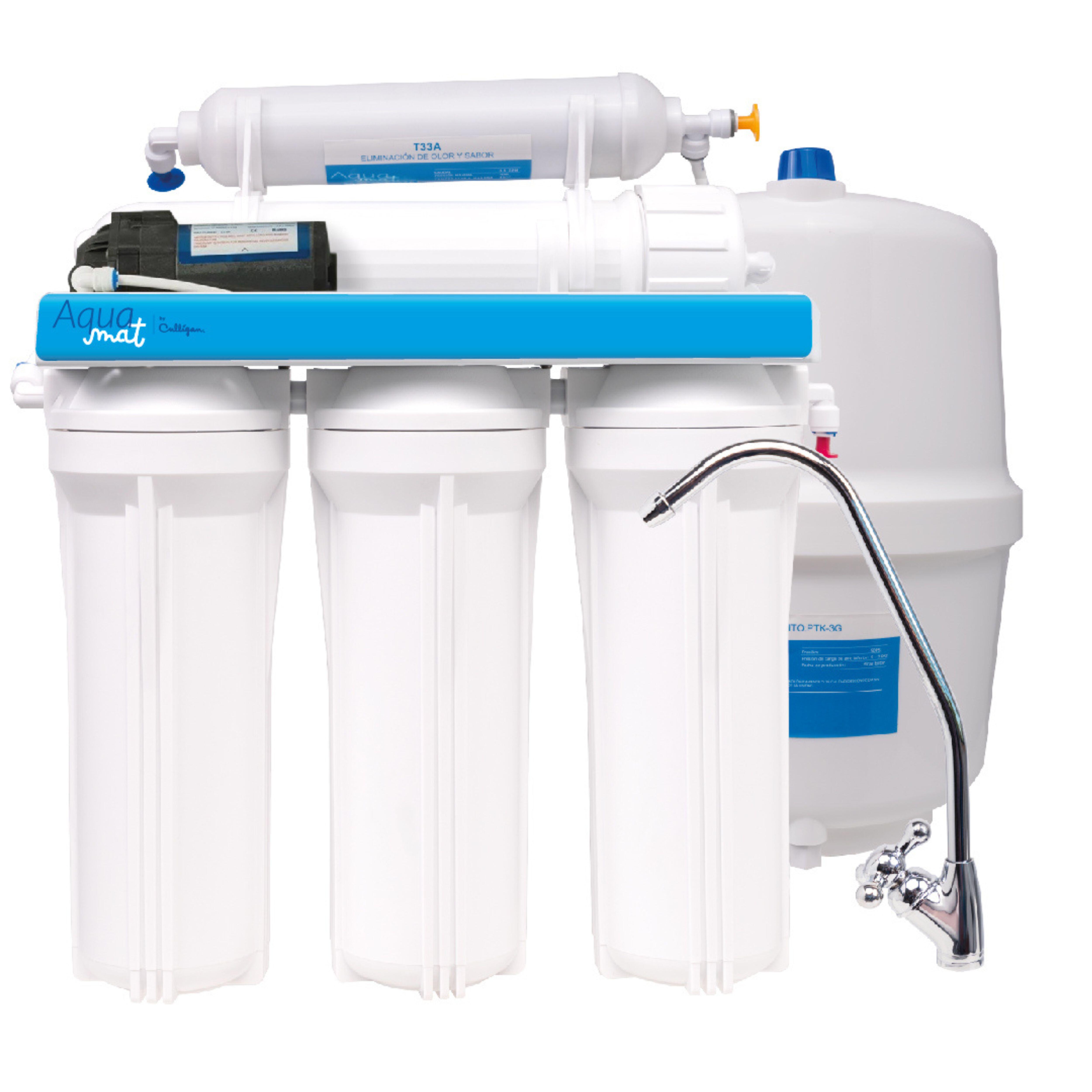 Ósmosis inversa con bomba. Mejora la calidad del agua, eliminando sabores y reduciendo la concentración de diversos componentes disueltos en el agua.