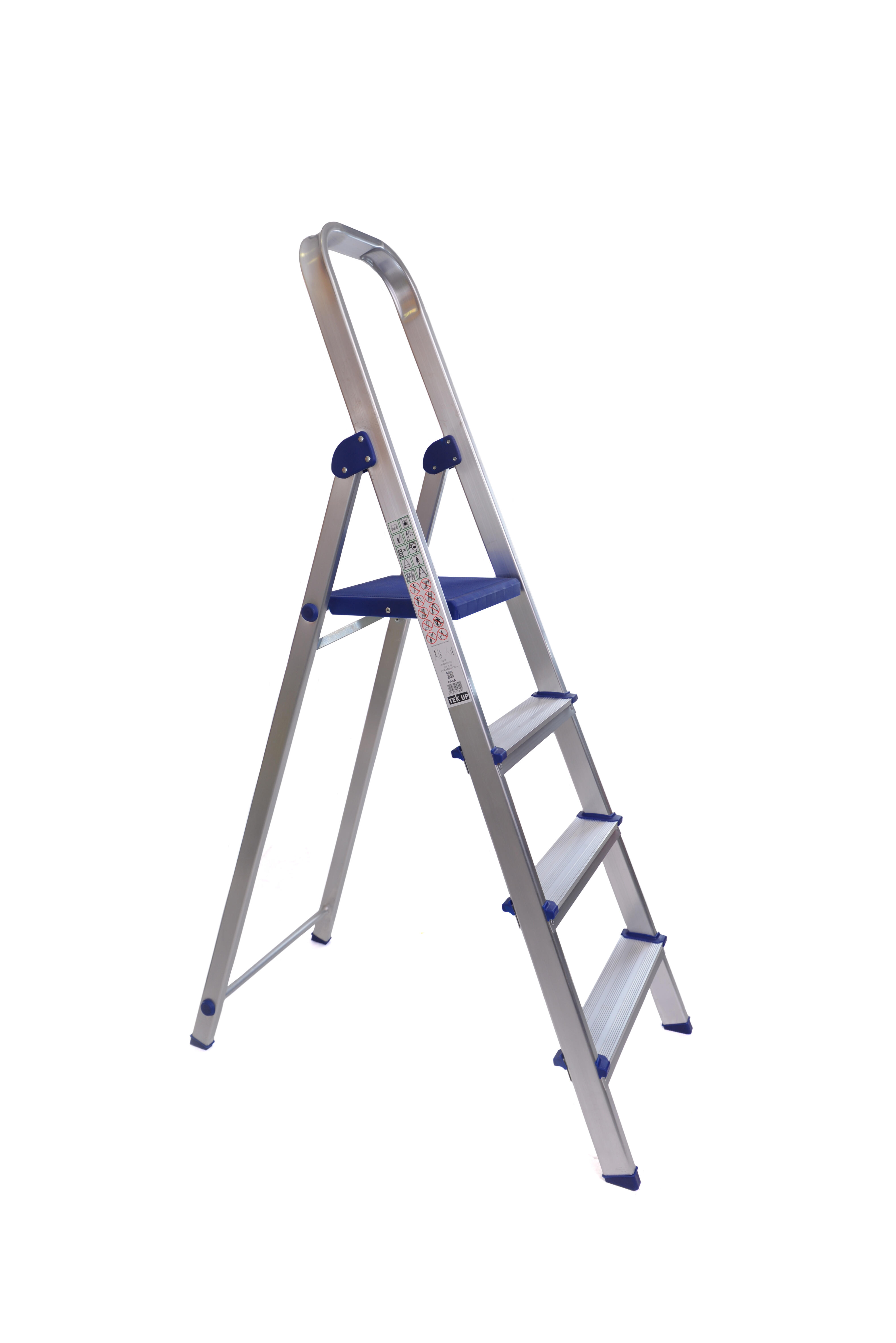 Escalera doméstica de aluminio de 4 peldaños. Carga máxima de 100Kg. Peso 3,5Kg.
