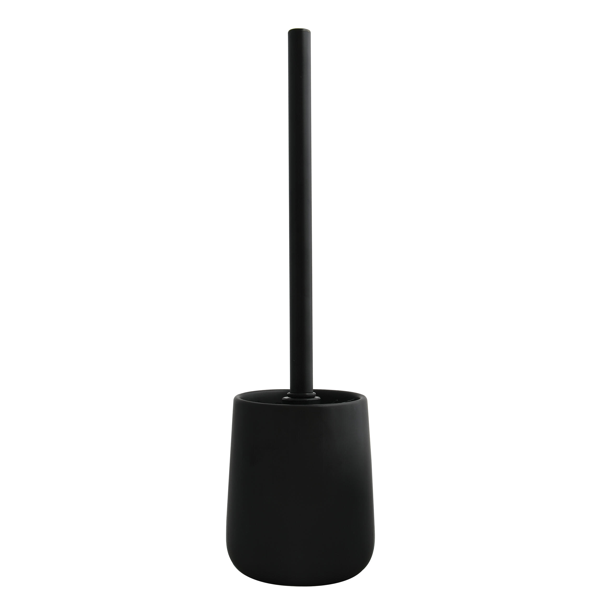 Escobillero fabricado en porcelana, de color negro. La escobilla está equipada con cerdas resistentes al desgaste.
