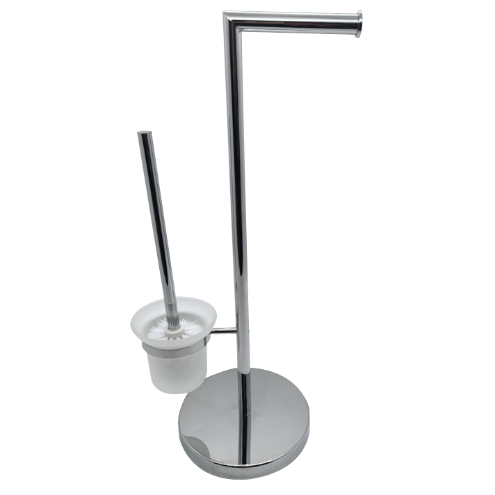 Portarrollos + Escobillero de la serie Architech, medida total 20x57x20cm. Fabricado en acero inoxidable, acabado cromado.