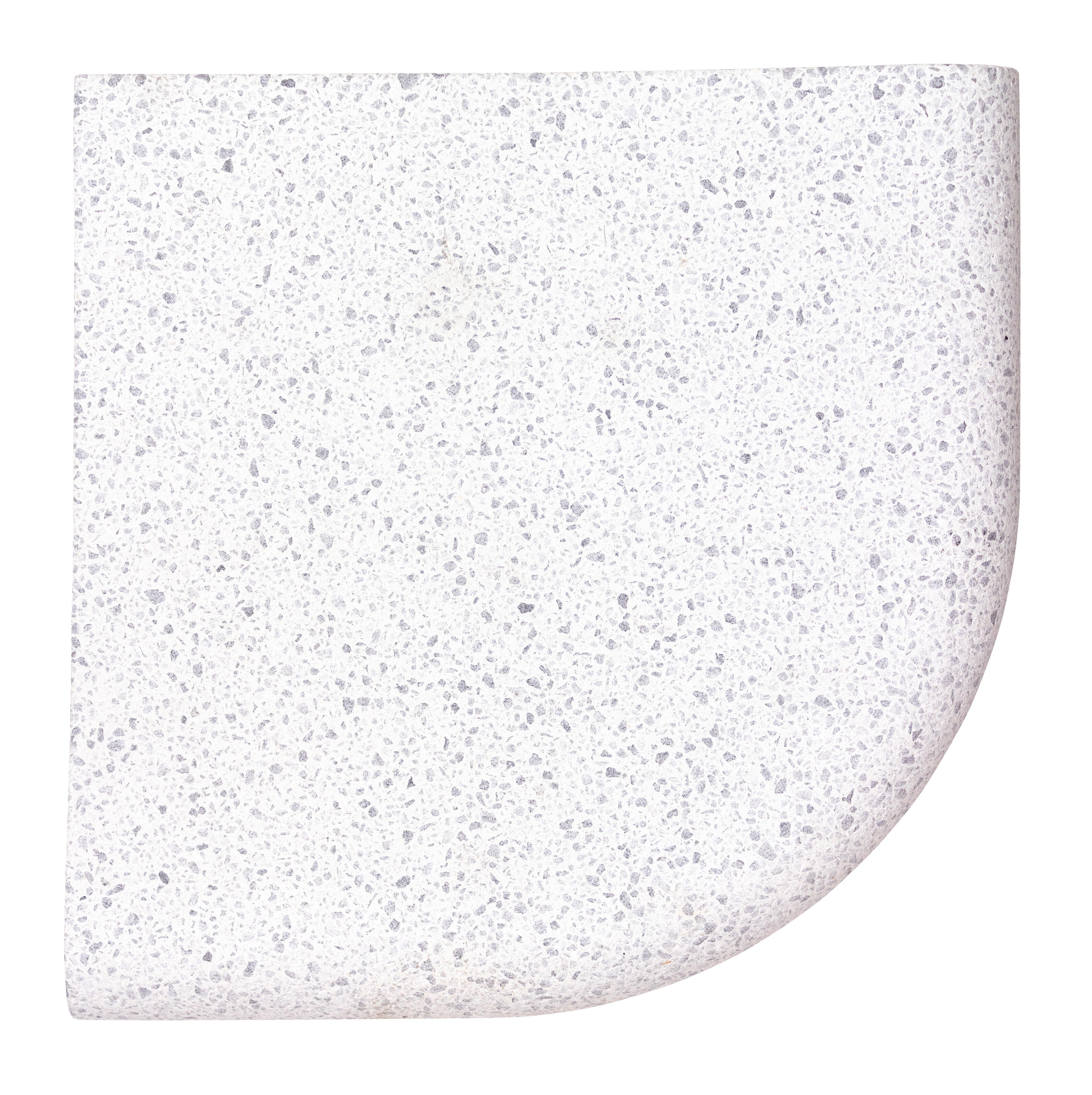 Pieza especial prefabricada para piscinas. Color blanco y acabado suave con textura de piedra. Recomendado para bordes de piscina con un acabado redondeado. Formato rectangular para las esquinas interiores de los bordes de piscina, con un corte curvado interior para completar la esquina. Se vende por piezas de 35x55mm.