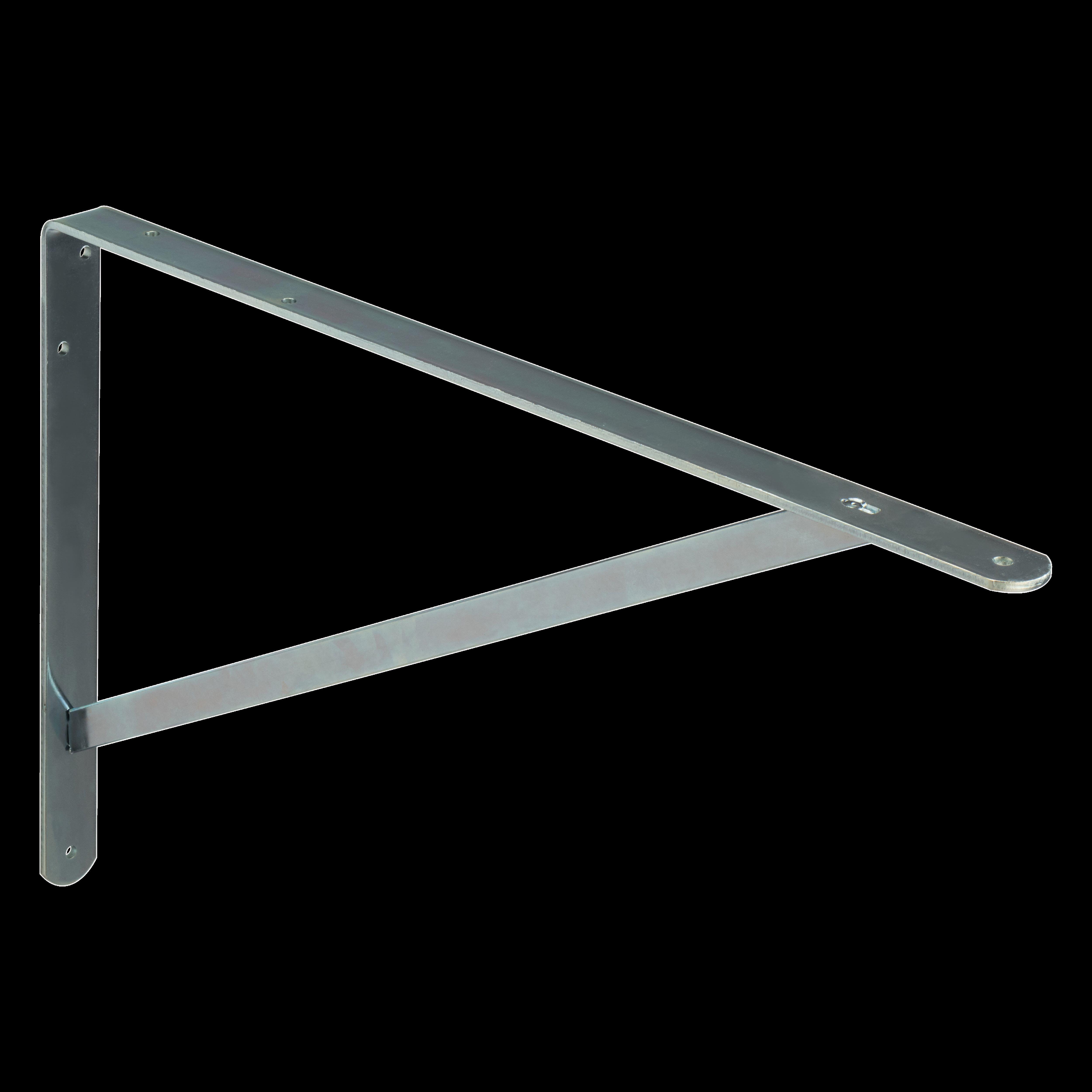 Escuadra o soporte de acero galvanizado ideal para sostener un estante de 50 cm de profundidad y agregar espacio de almacenamiento en su hogar Tiene 6 agujeros para fijarlo fácilmente a la pared.